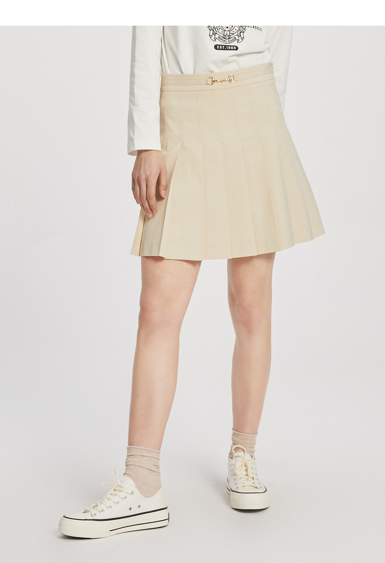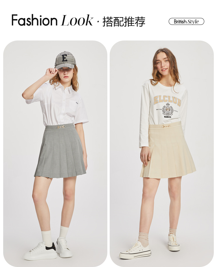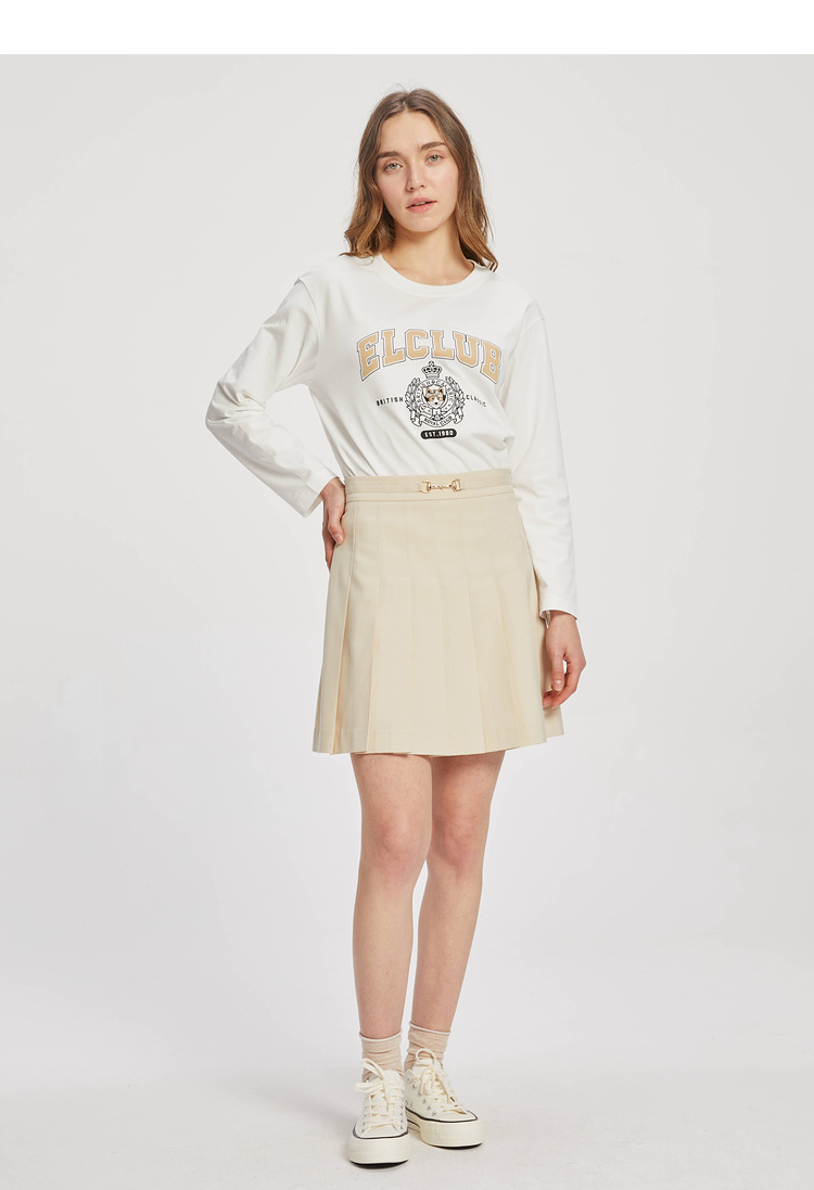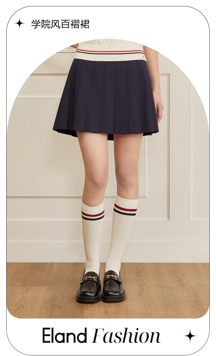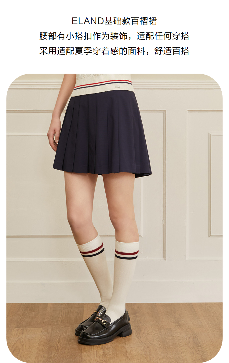 ELAND衣恋学院风高腰显瘦小个子百褶裙半身裙女EEWHC23H1C