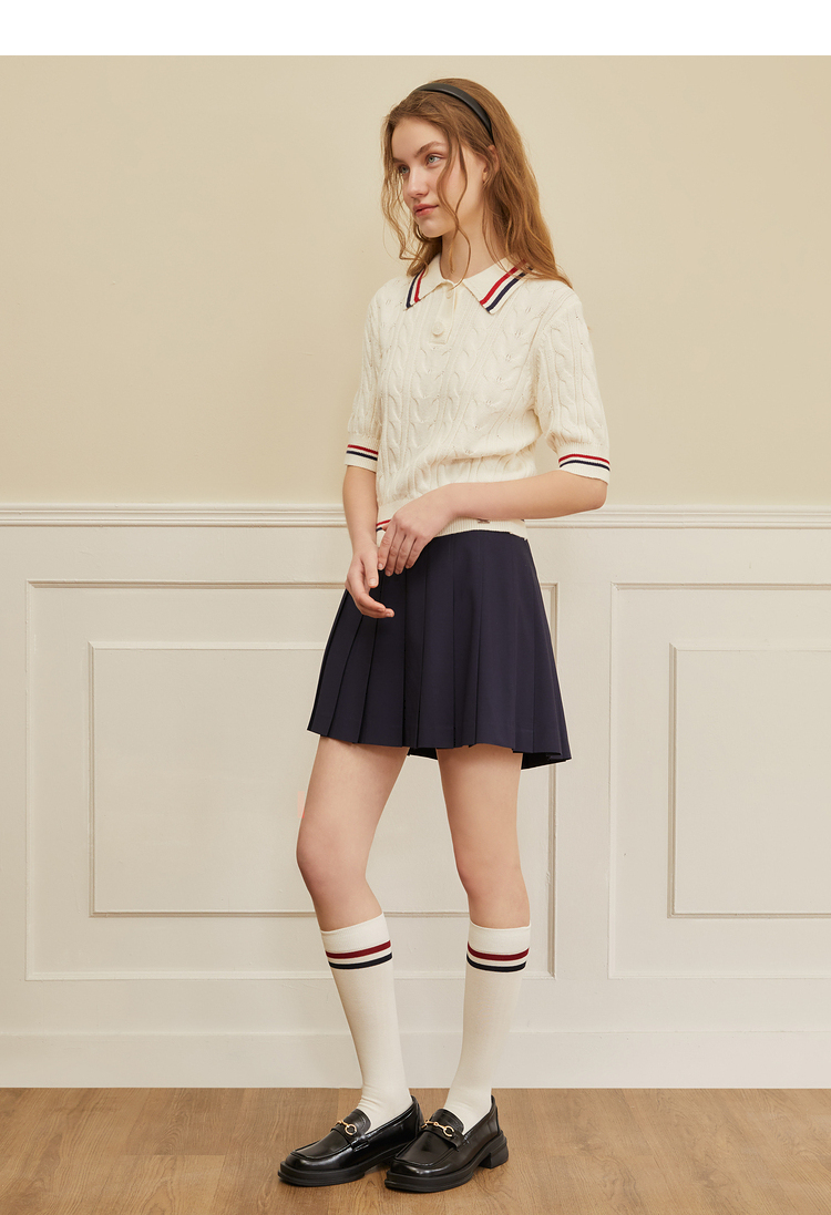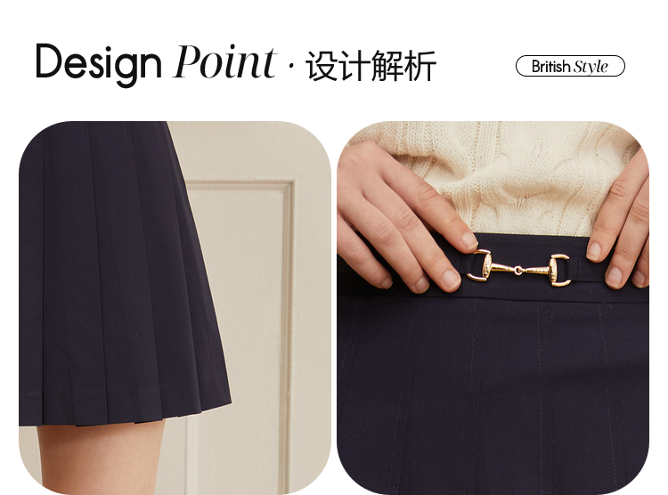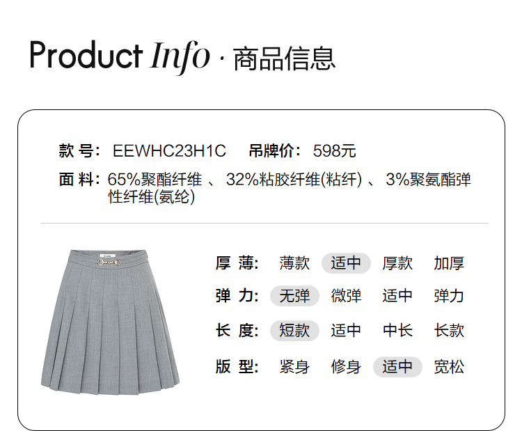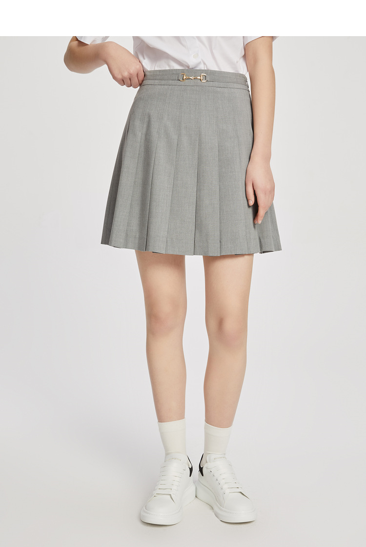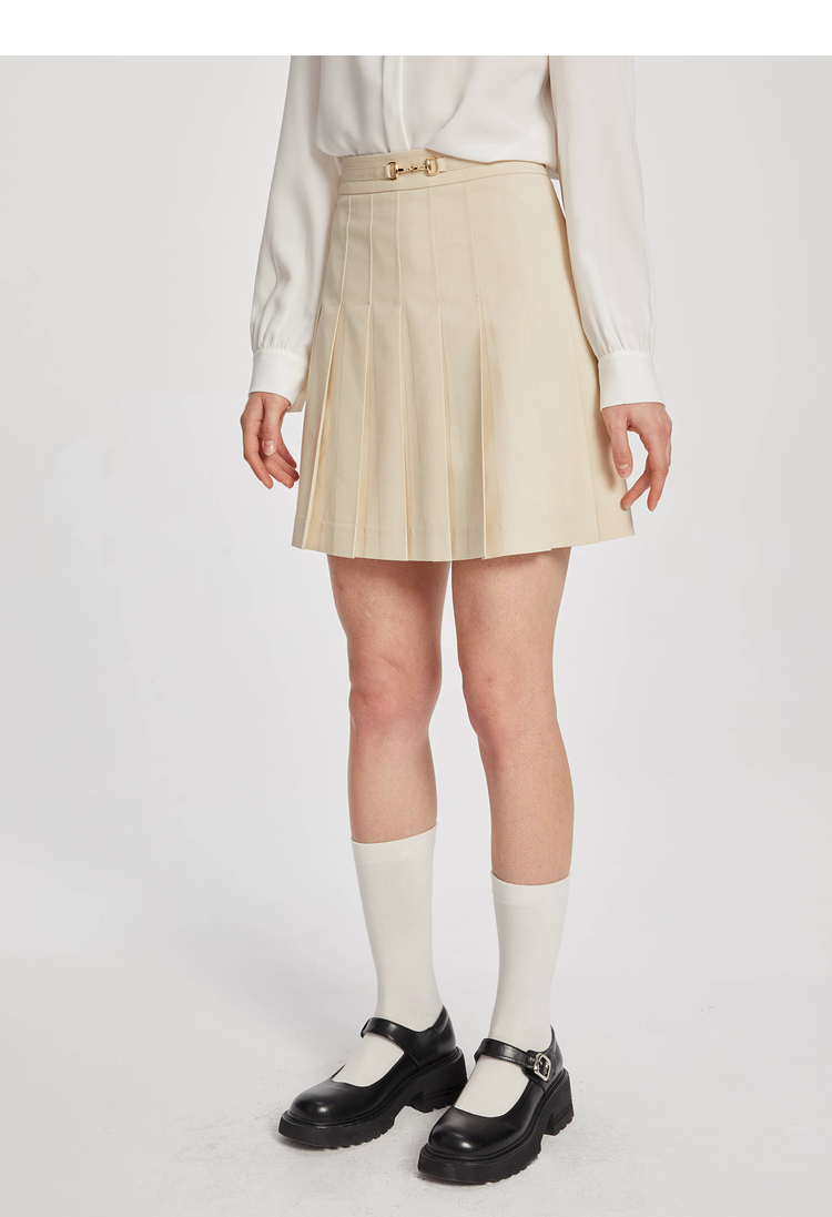ELAND衣恋学院风高腰显瘦小个子百褶裙半身裙女EEWHC23H1C