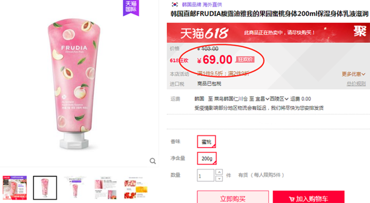 商品名称:【清仓好价】馥露迪雅我的果园桃子身体乳200ml(23.7)
