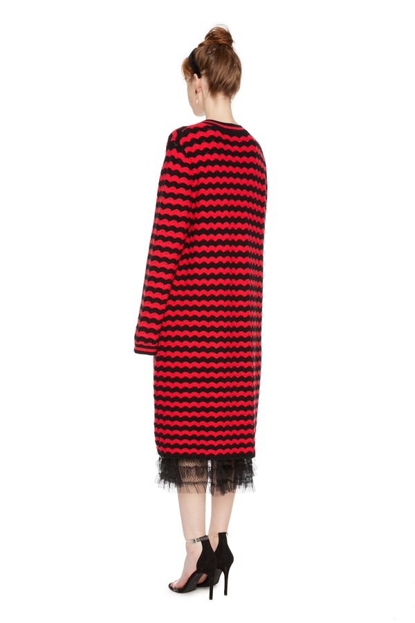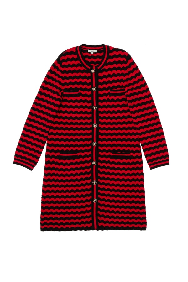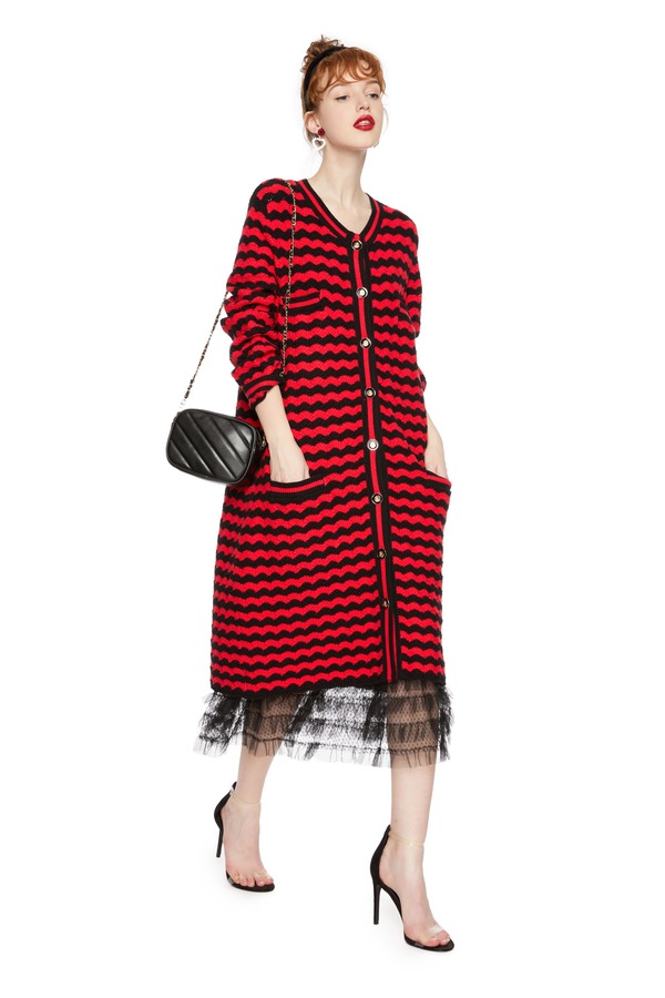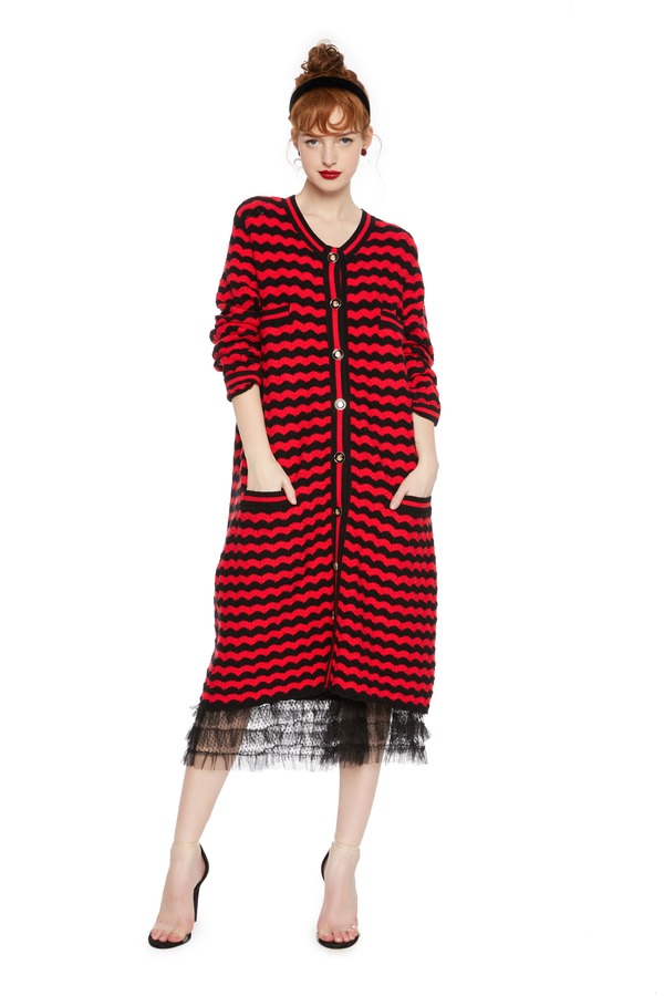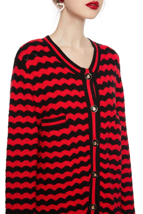 WEN&VI 拼色波浪条纹针织开衫 5539
