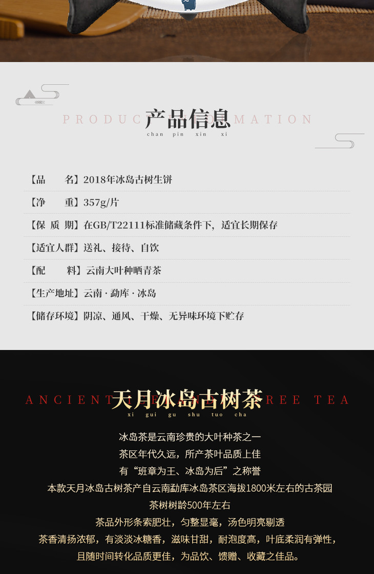 【天月古树茶】2018年冰岛古树普洱茶生饼 357g