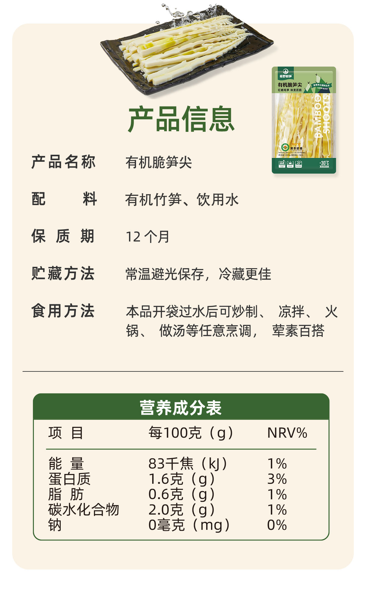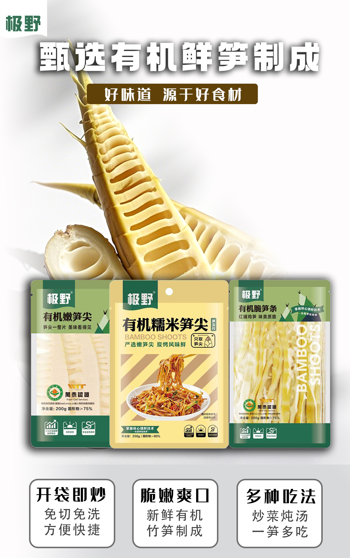 极野有机笋 有机糯米笋尖有机嫩笋尖有机脆笋尖 炖汤、热炒、凉拌菜、火锅【京东快递送货上门】