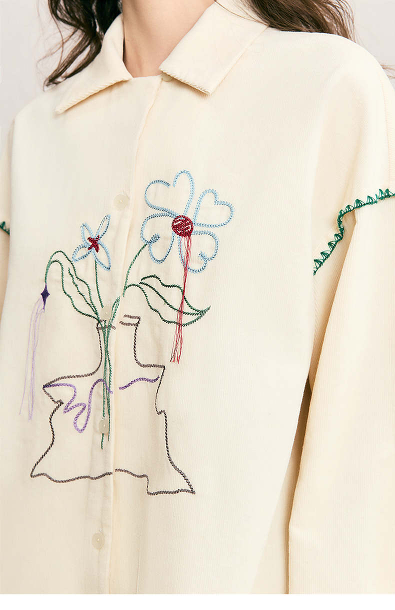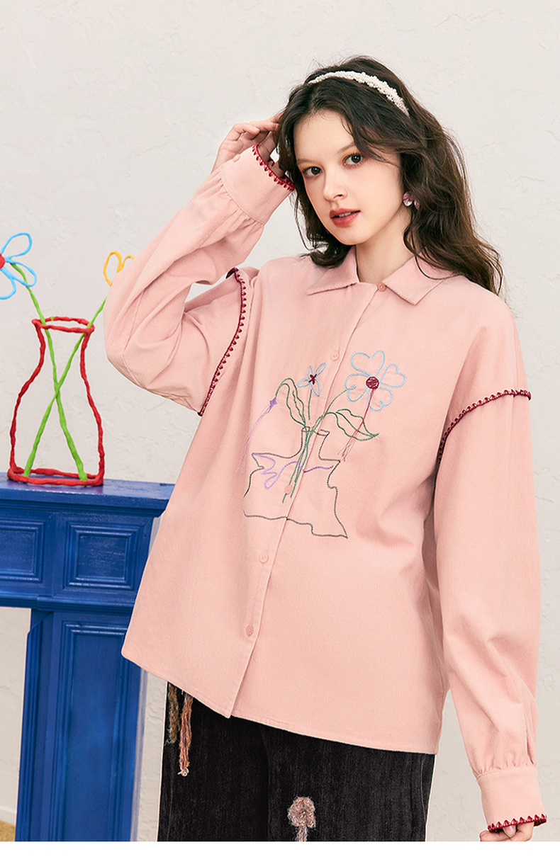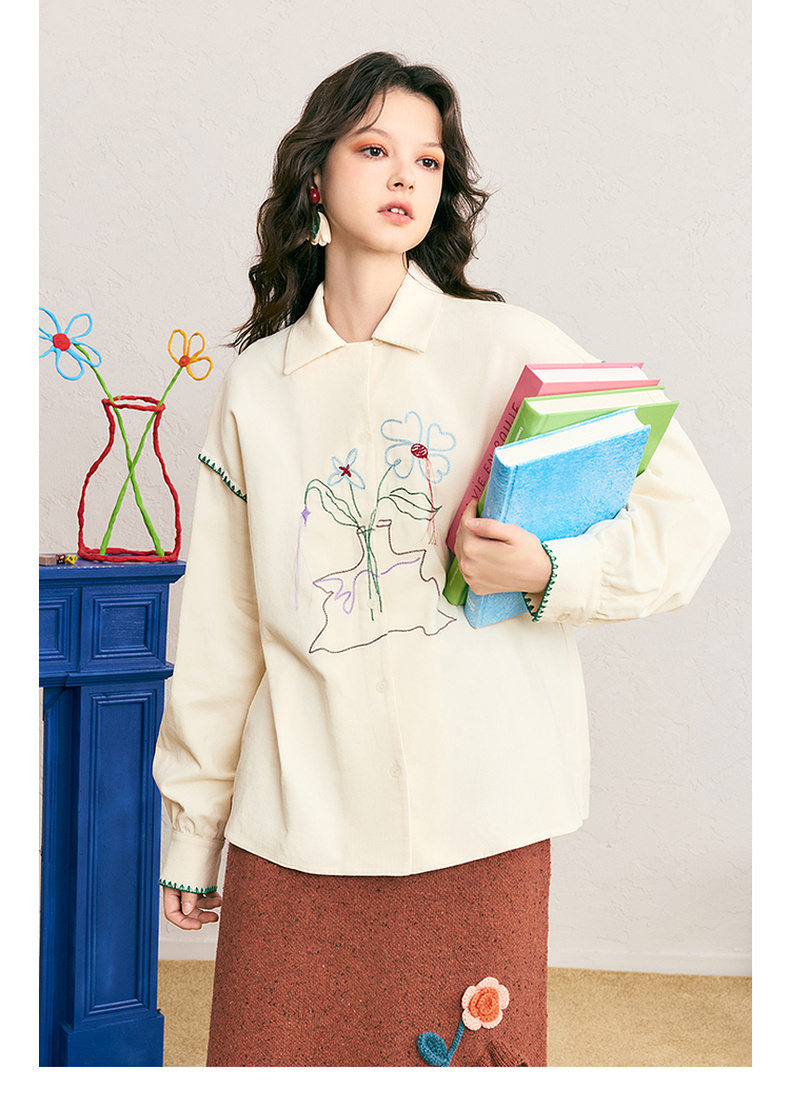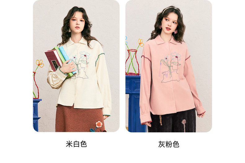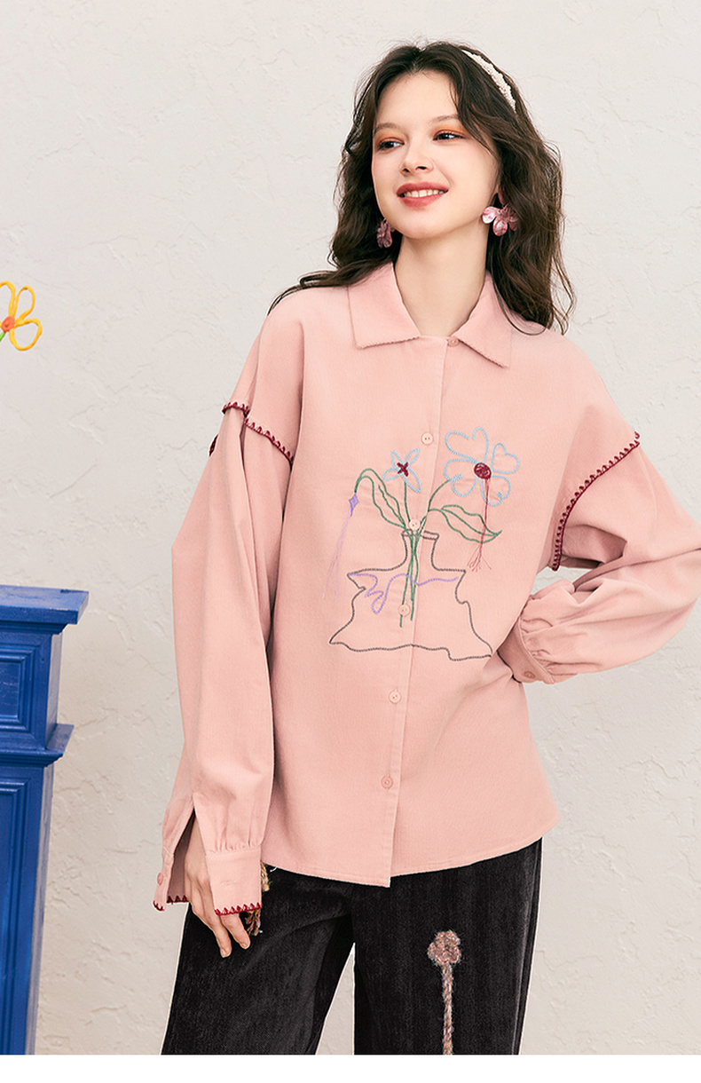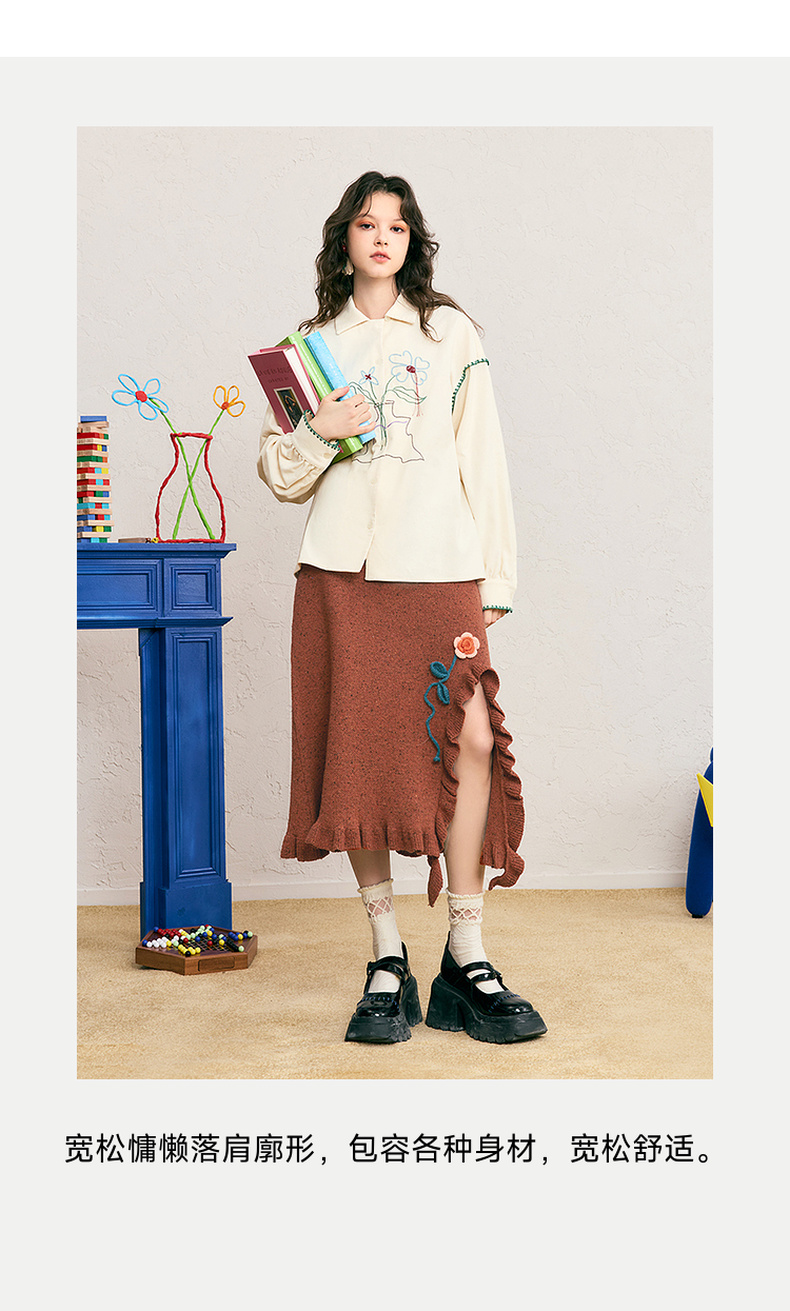 两三事 花绘集 2024冬季新款文艺风流苏绣花长袖衬衫女宽松