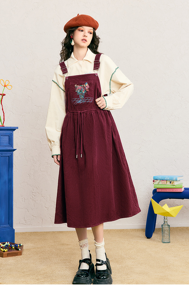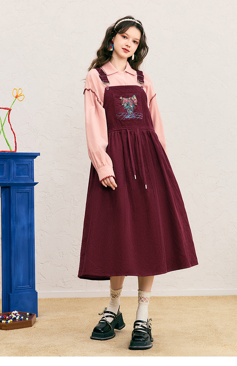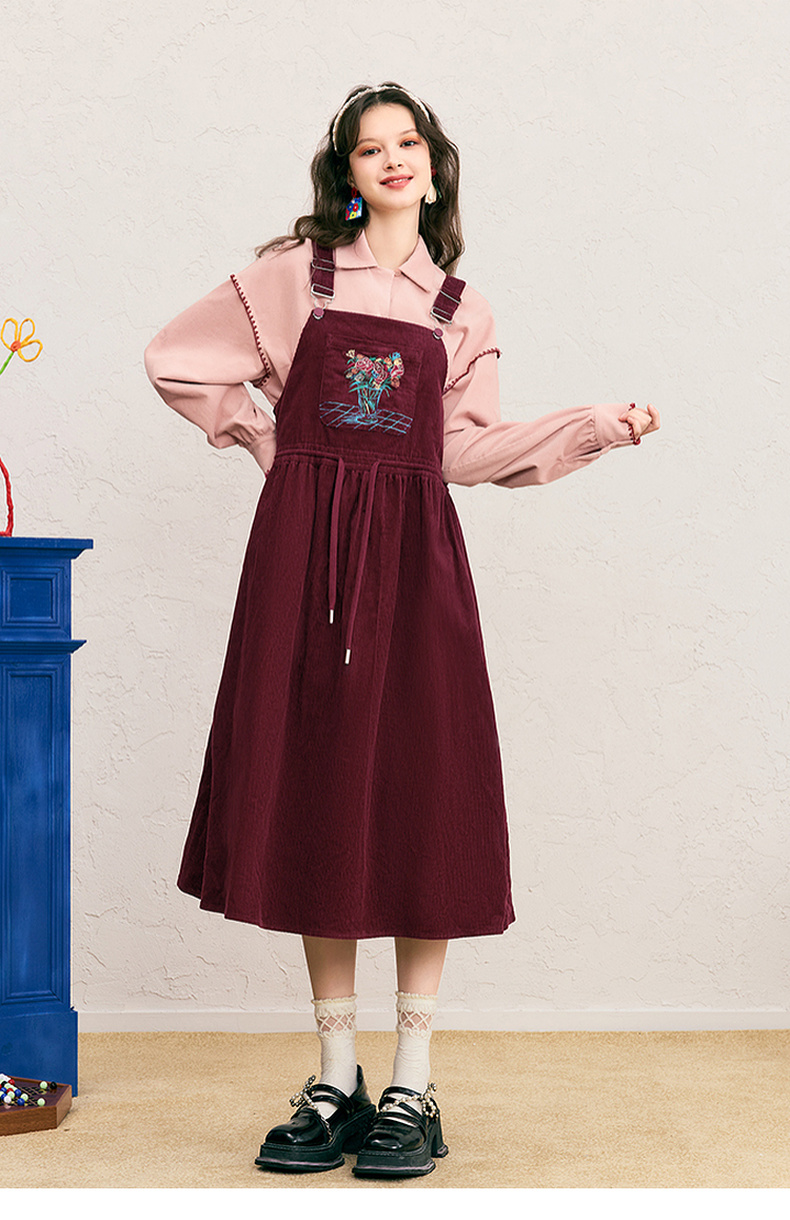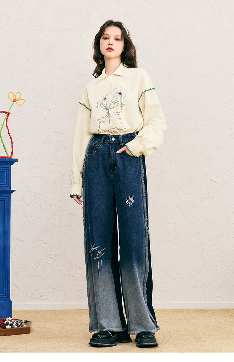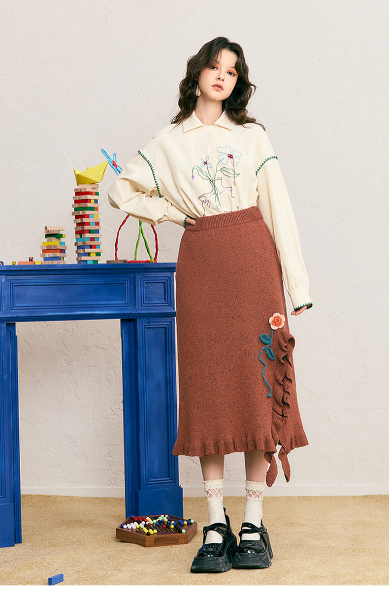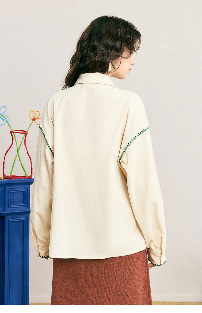 两三事 花绘集 2024冬季新款文艺风流苏绣花长袖衬衫女宽松