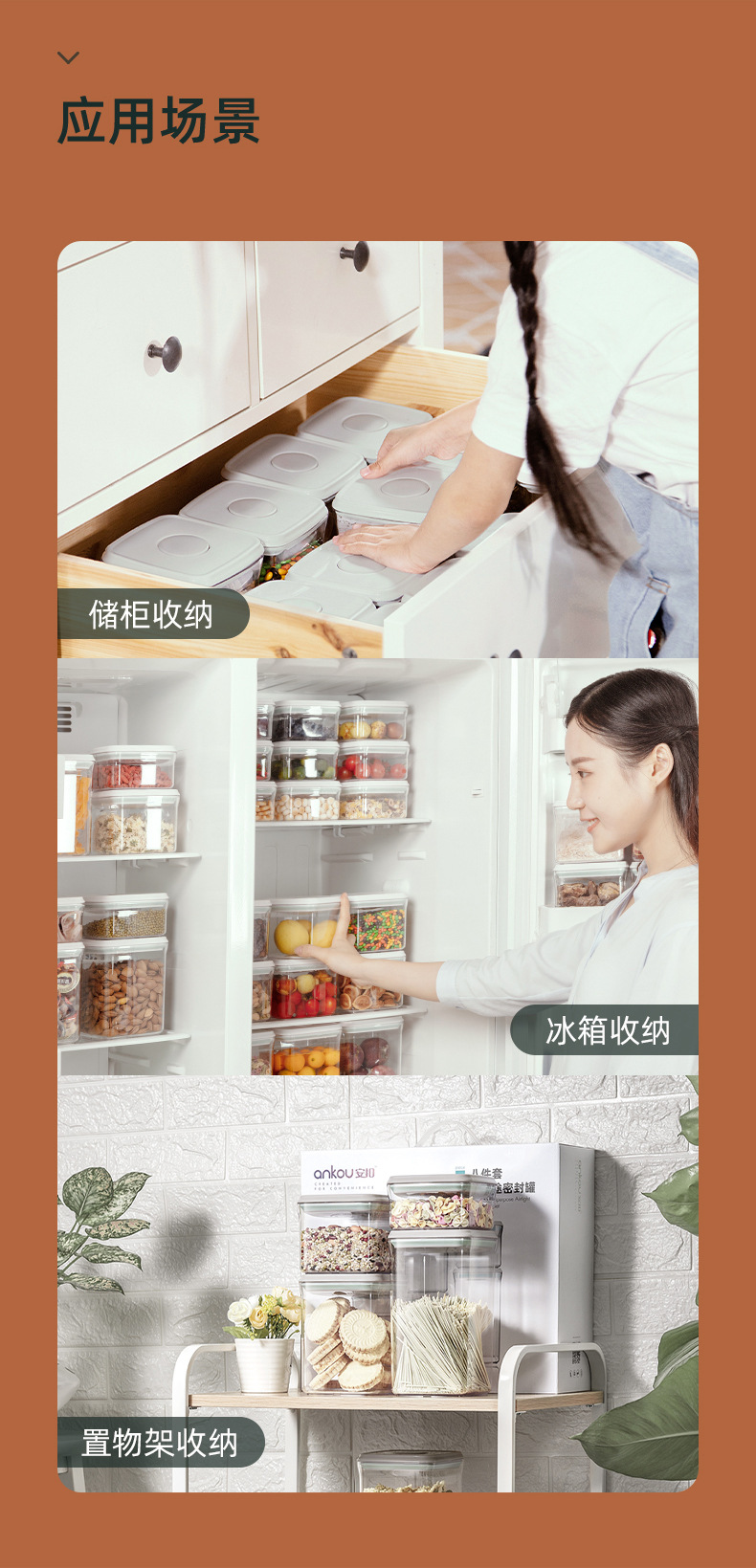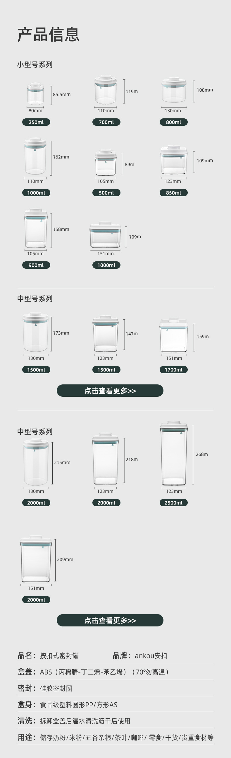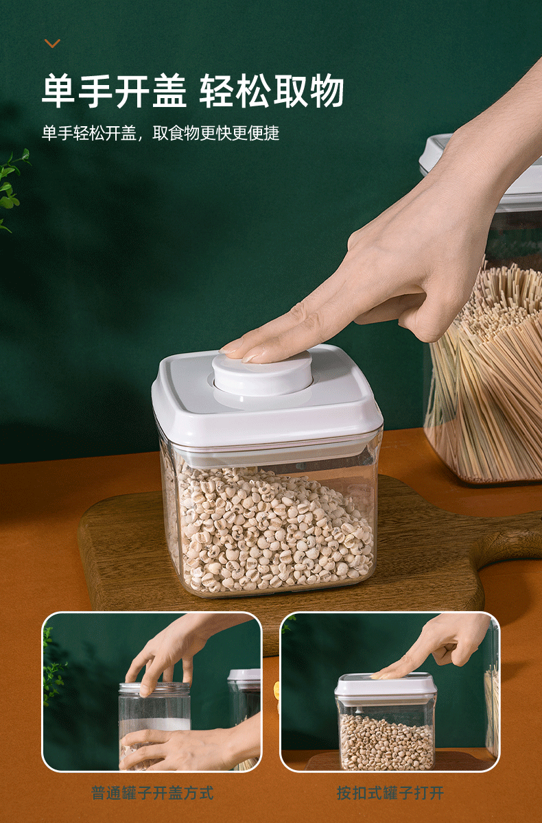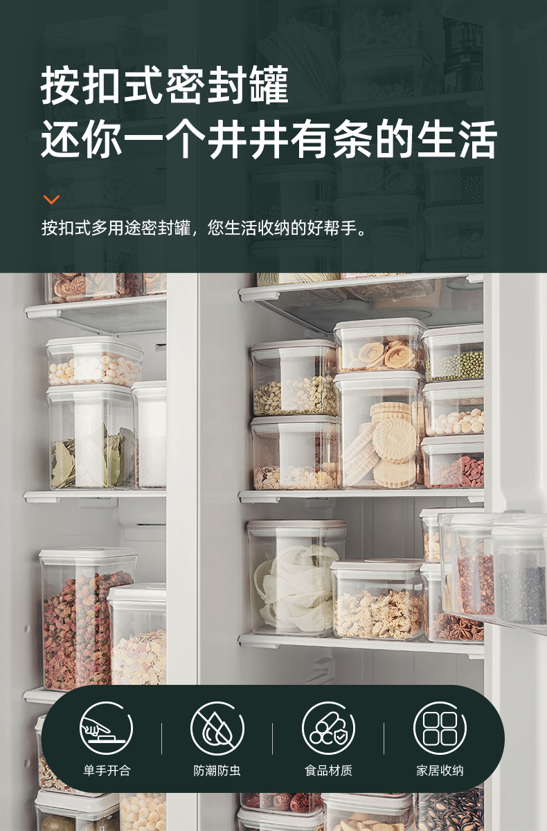 【按扣式密封罐】安扣食品香料收纳罐 保鲜防潮透明储物罐 五谷杂粮收纳塑料密封罐