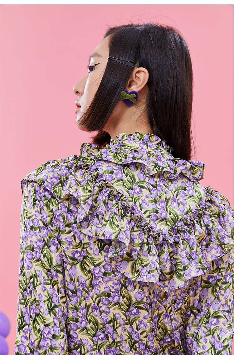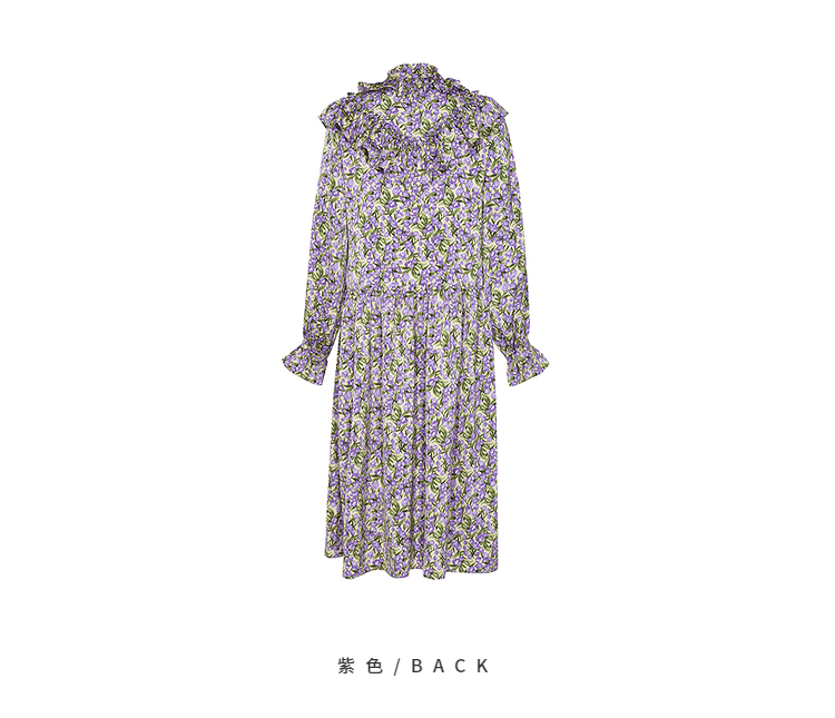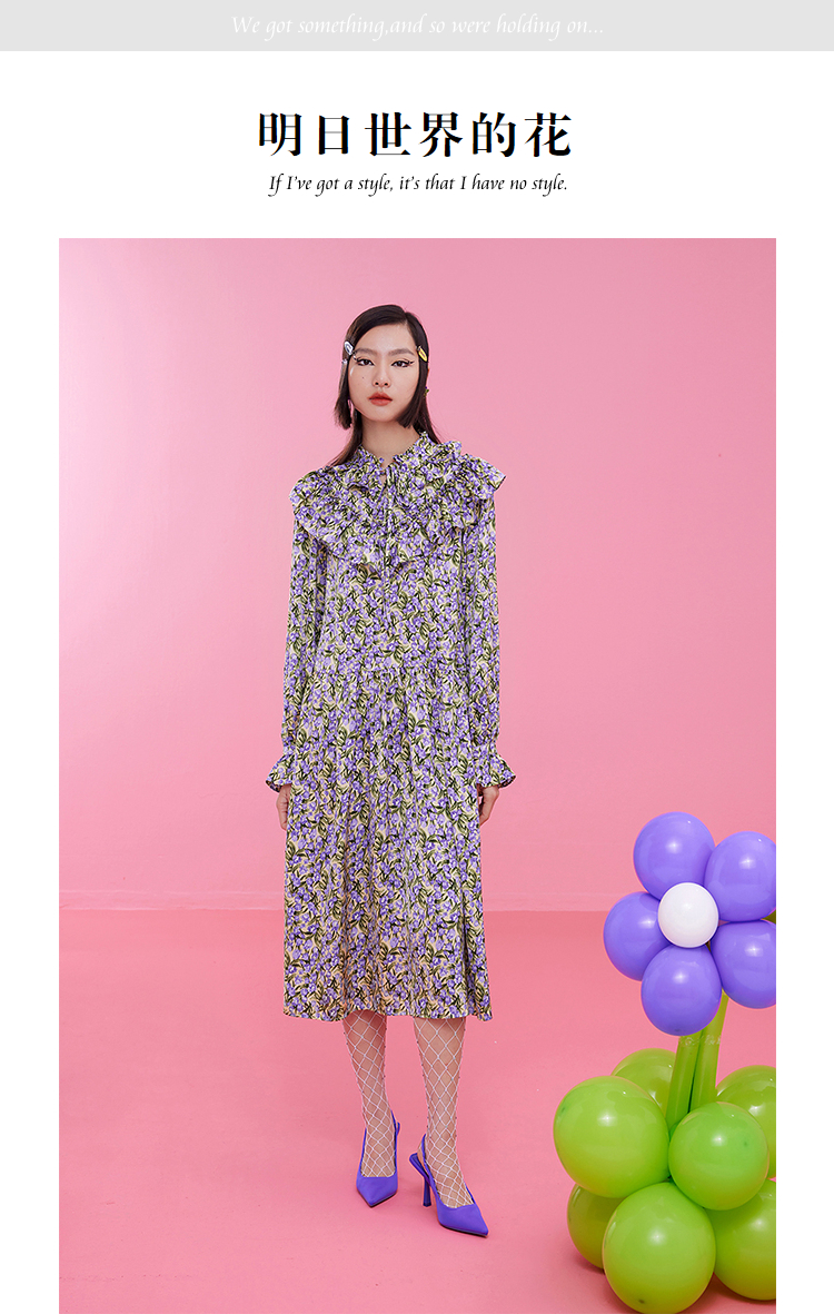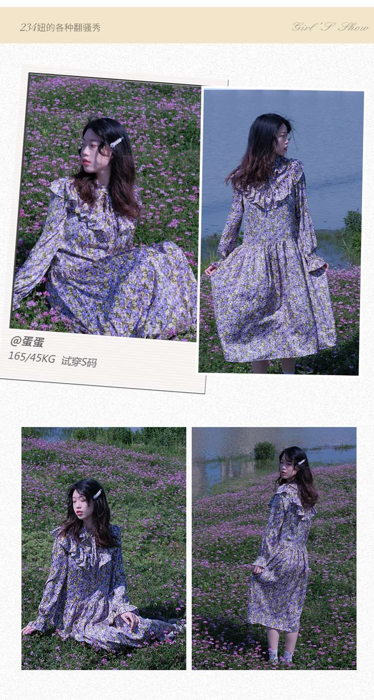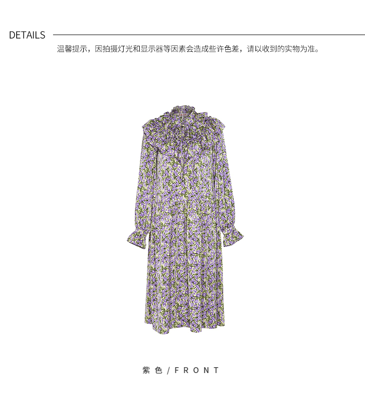 两三事国潮艺术明日世界的花春新款复古荷叶边拼接印花连衣裙
