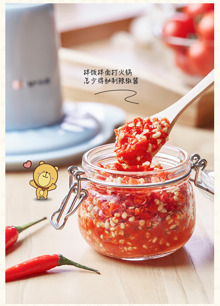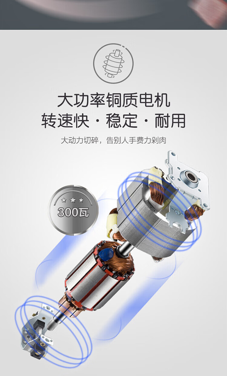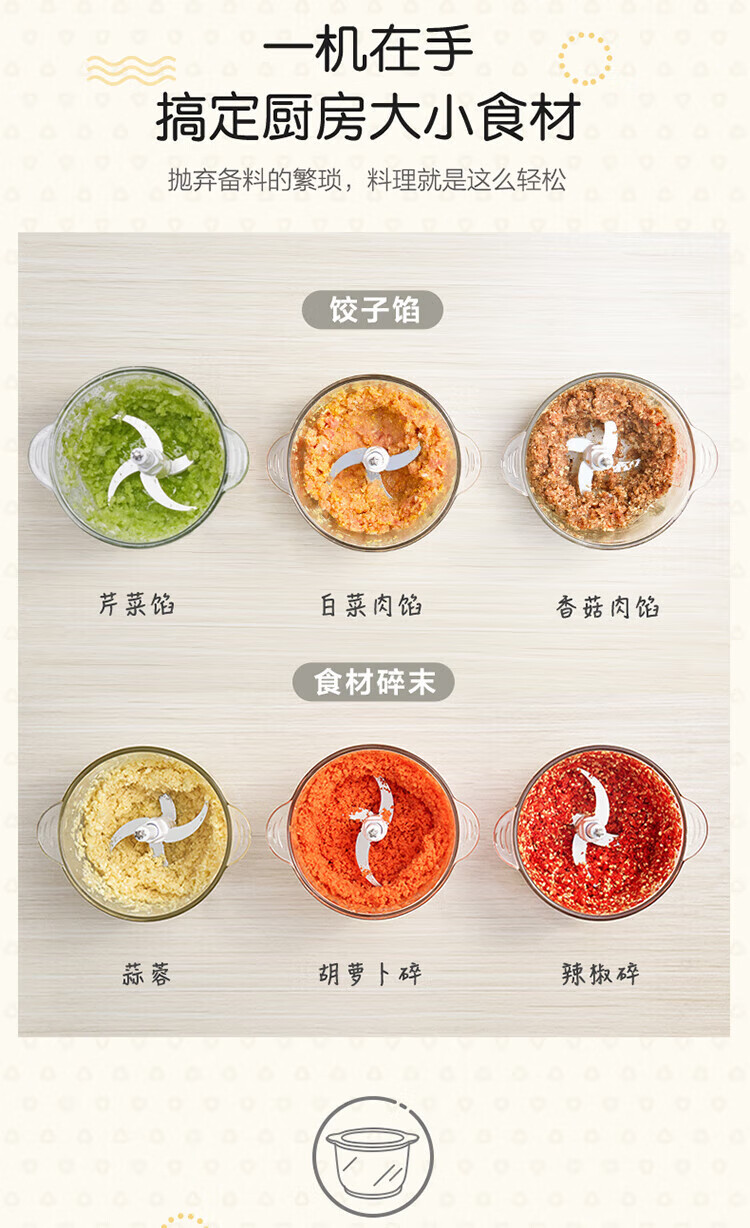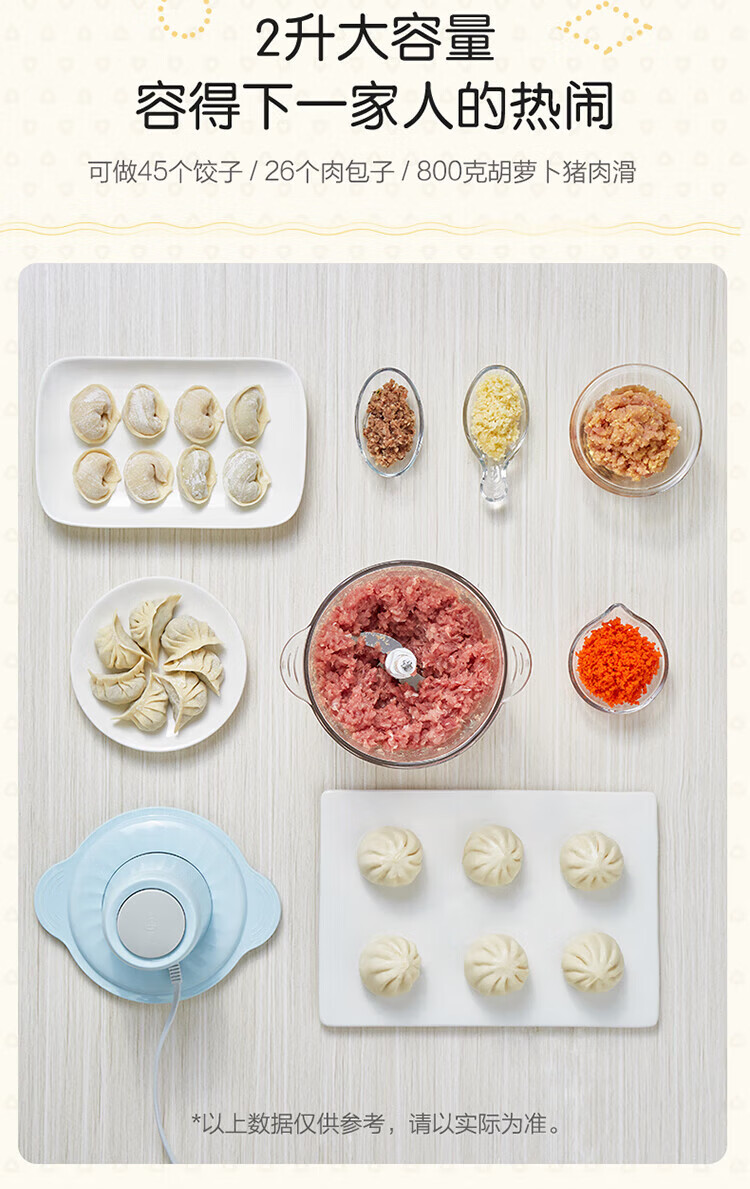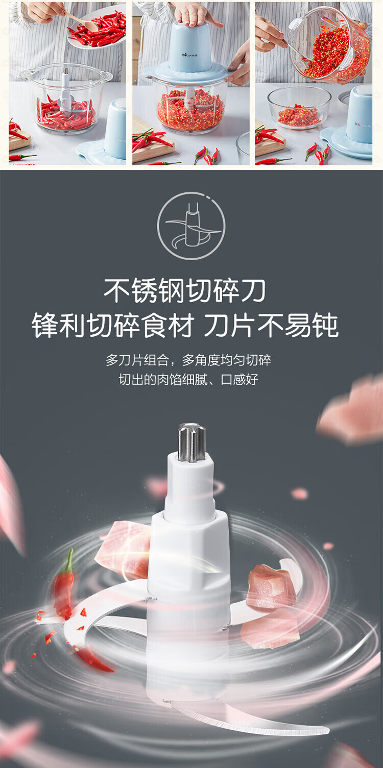 小熊(Bear)2升绞肉机 家用电动玻璃绞馅机碎肉打肉机切菜搅拌机QSJ-C03B1【浅蓝色】