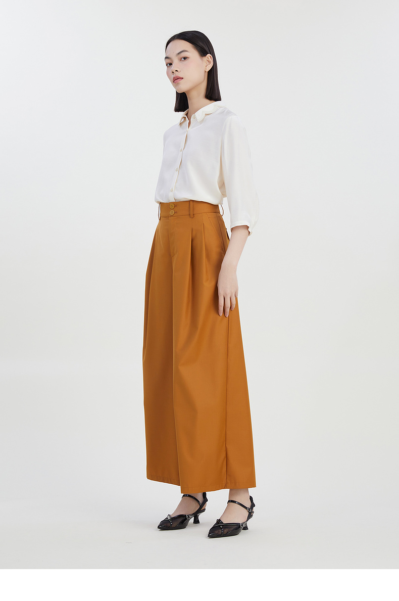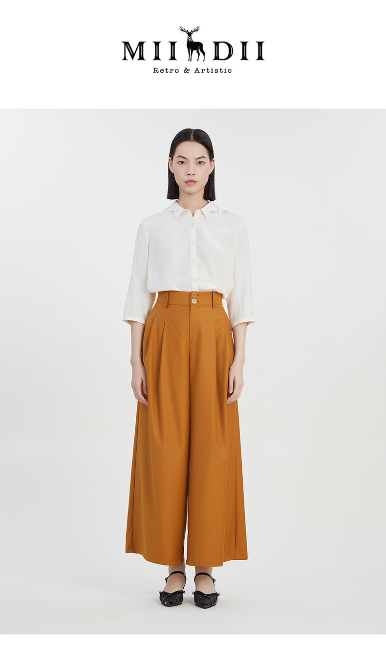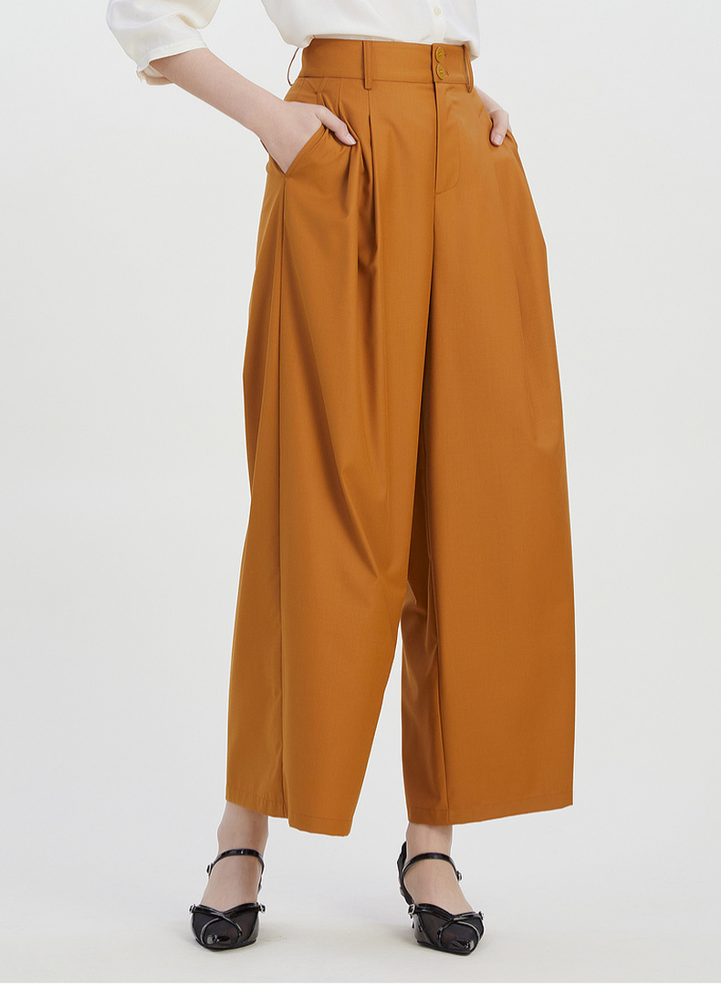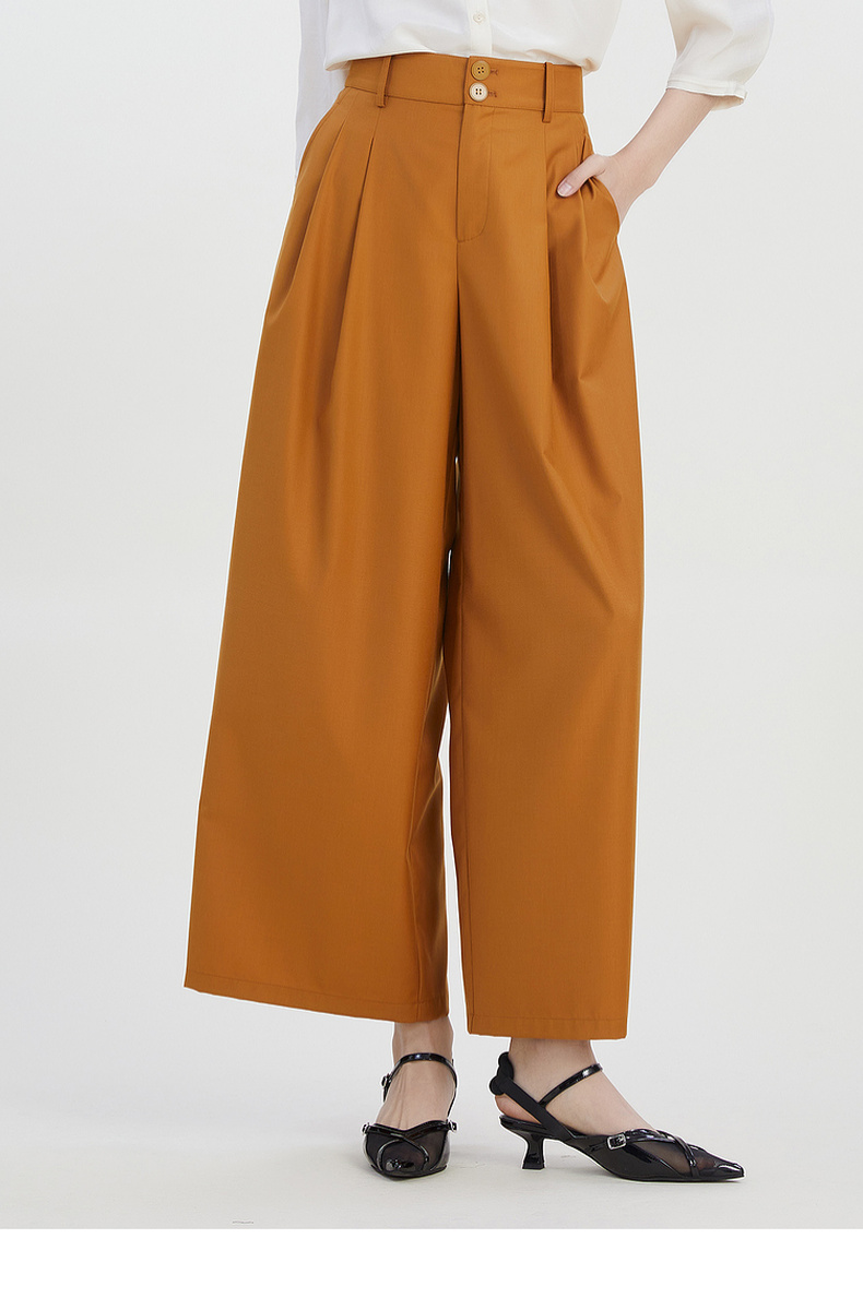 谜底高腰宽松阔腿长裤女2023夏新款时尚气质亲肤休闲裤232MK0640