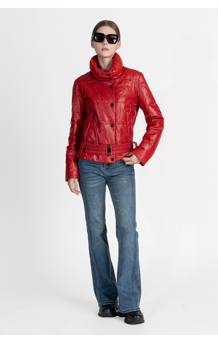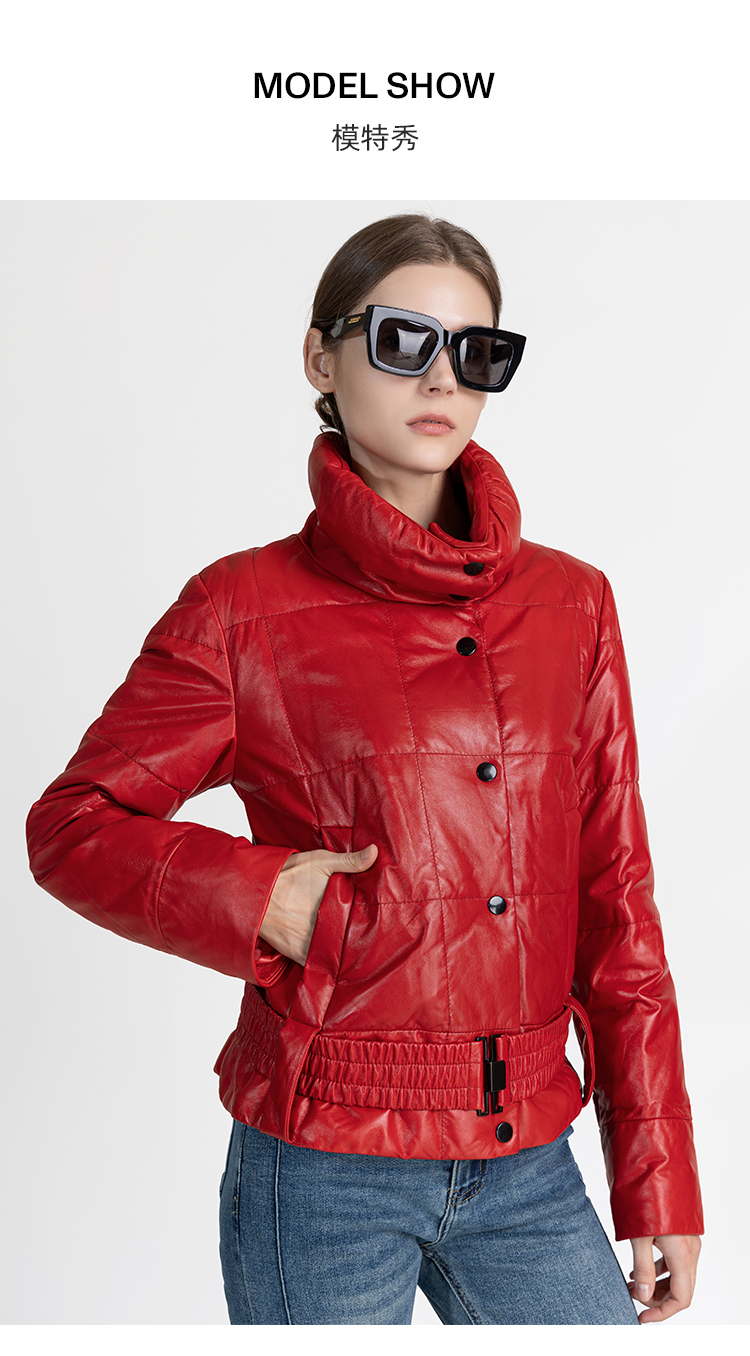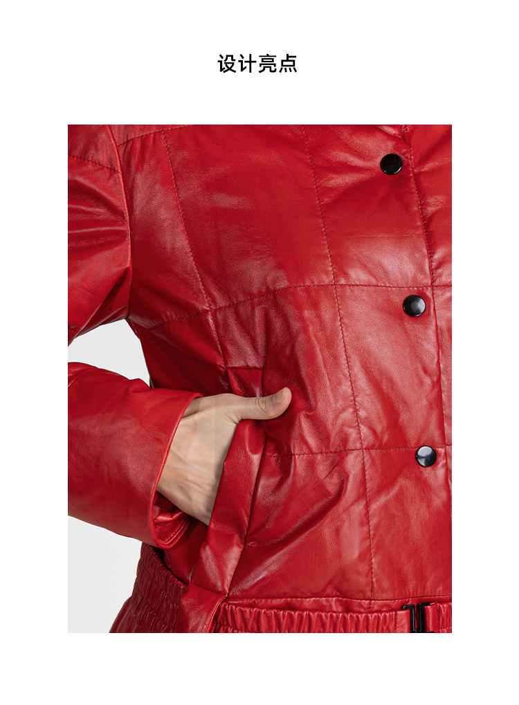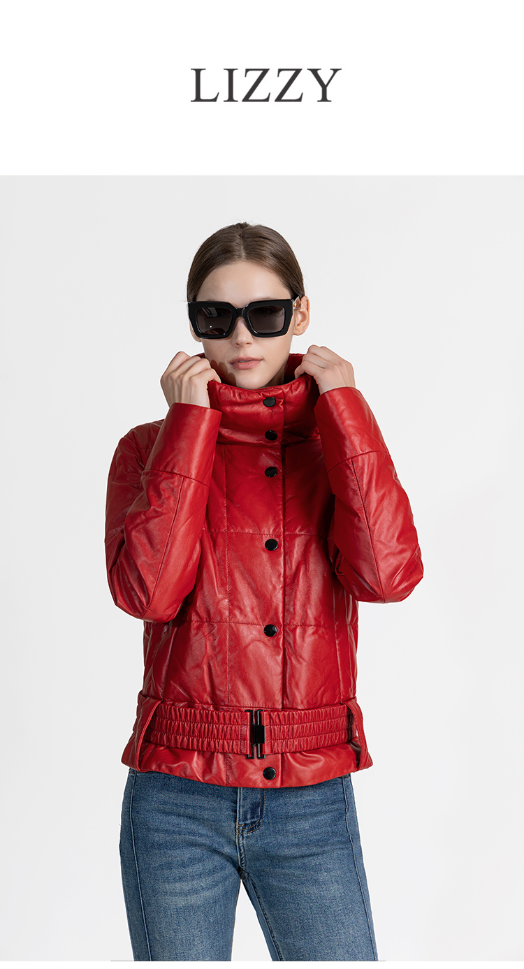 LIZZY冬季减龄简约保暖黑色绵羊皮白鸭绒羽绒服外套女4117