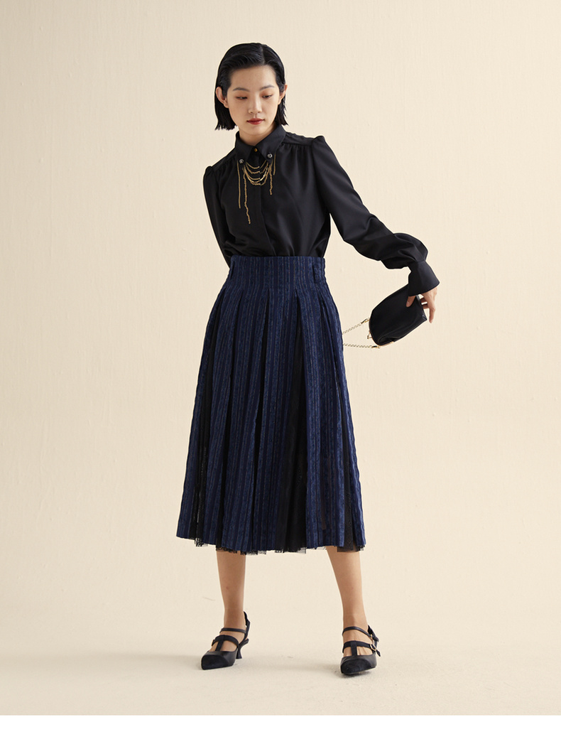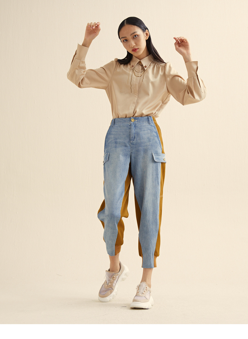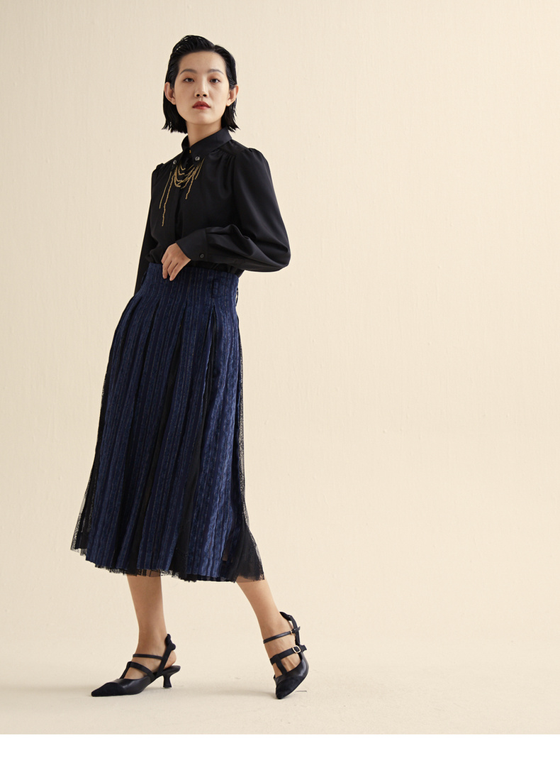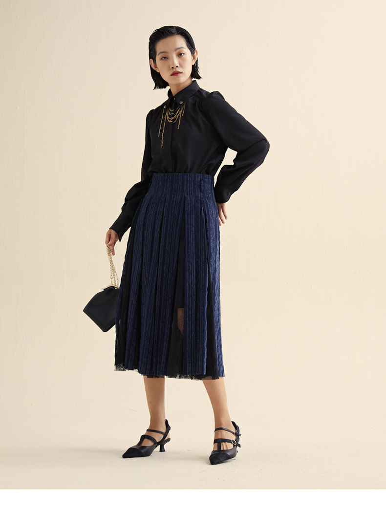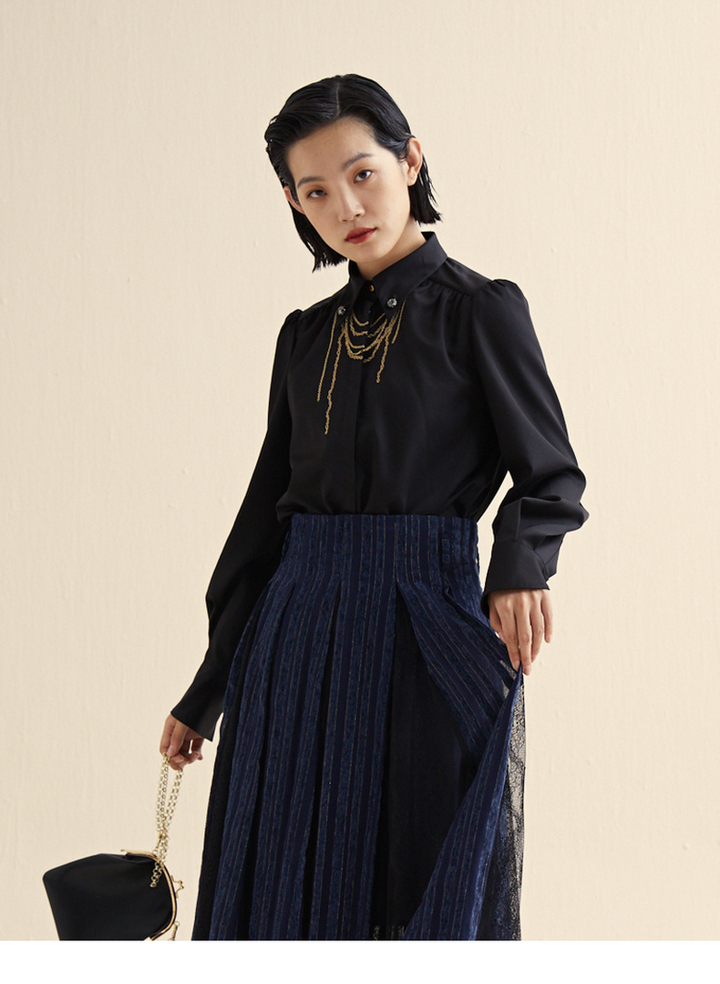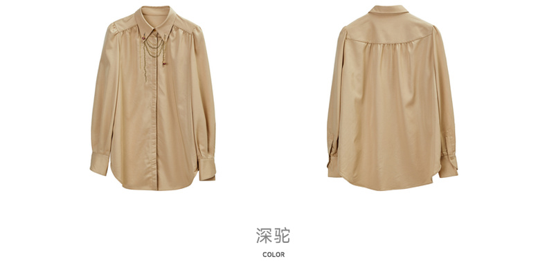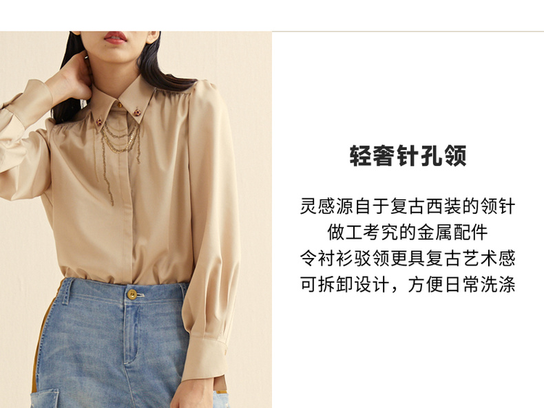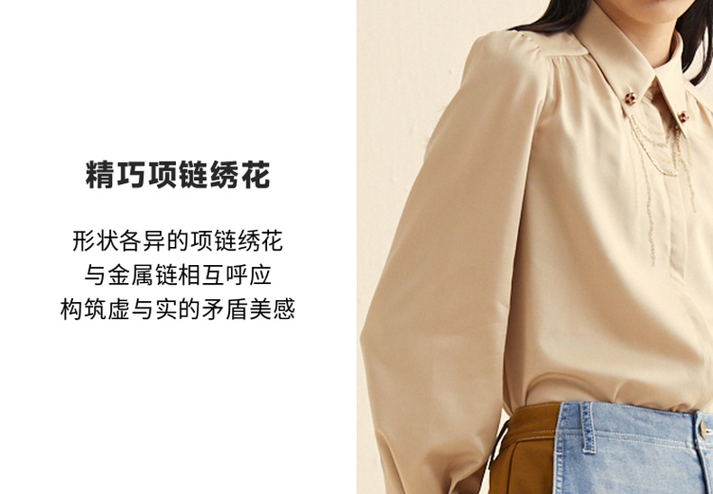 谜底2022春季新款合体莱赛尔衬衫女项链装饰长袖上衣女225MC6004