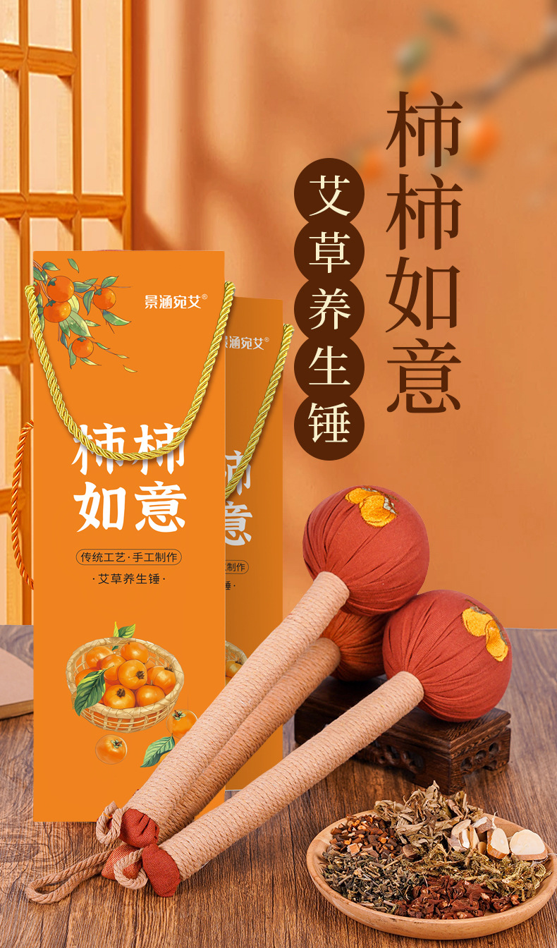 【柿柿如意❗️艾草锤养生锤礼盒】传统工艺,手工制作,多味草本助力!新年春节蛇年刺绣款送礼伴手礼款捶打经络套装