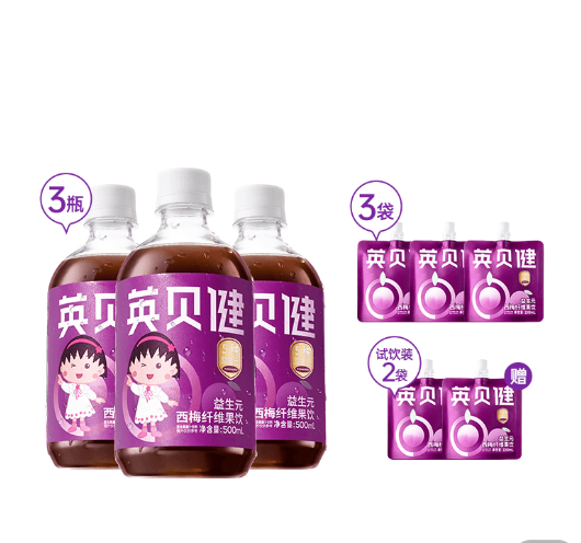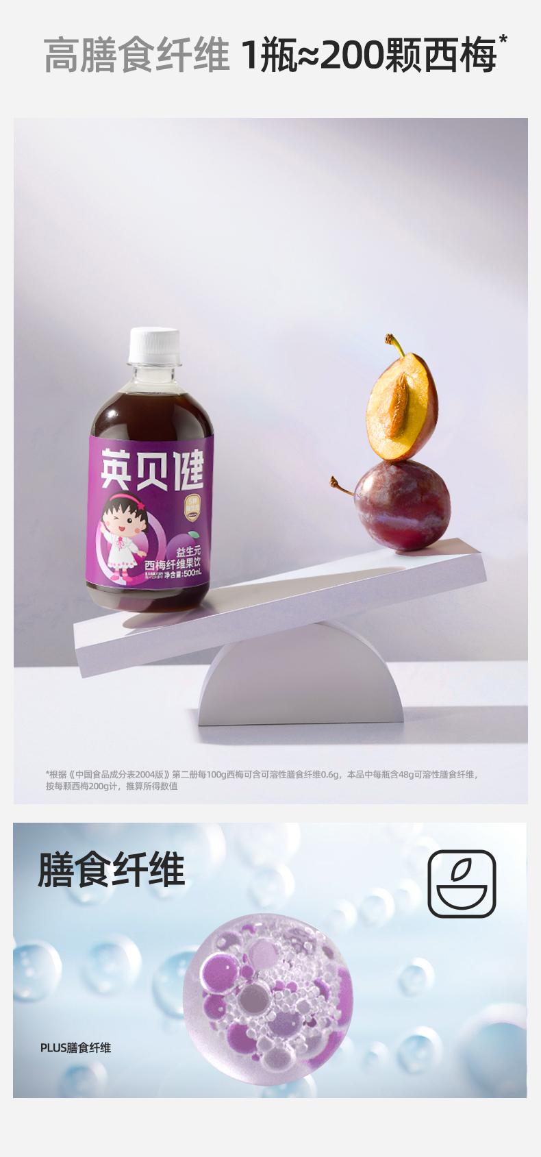 【大鹏】英贝健西梅汁益生元浓缩果汁500mL*3大瓶+便携装100ml*3袋+100ml*2袋