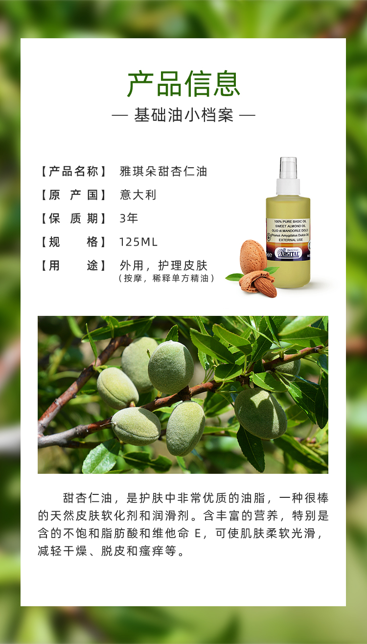 雅琪朵甜杏仁油125ml(天然植物原材料) 商品图2