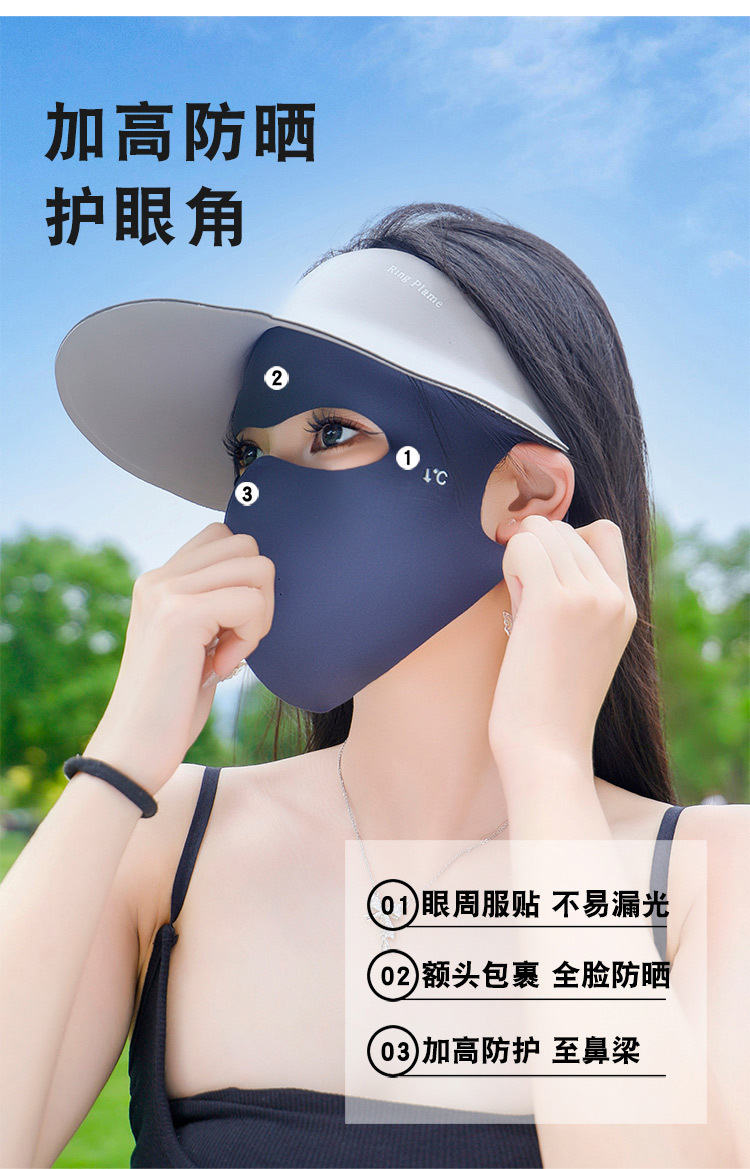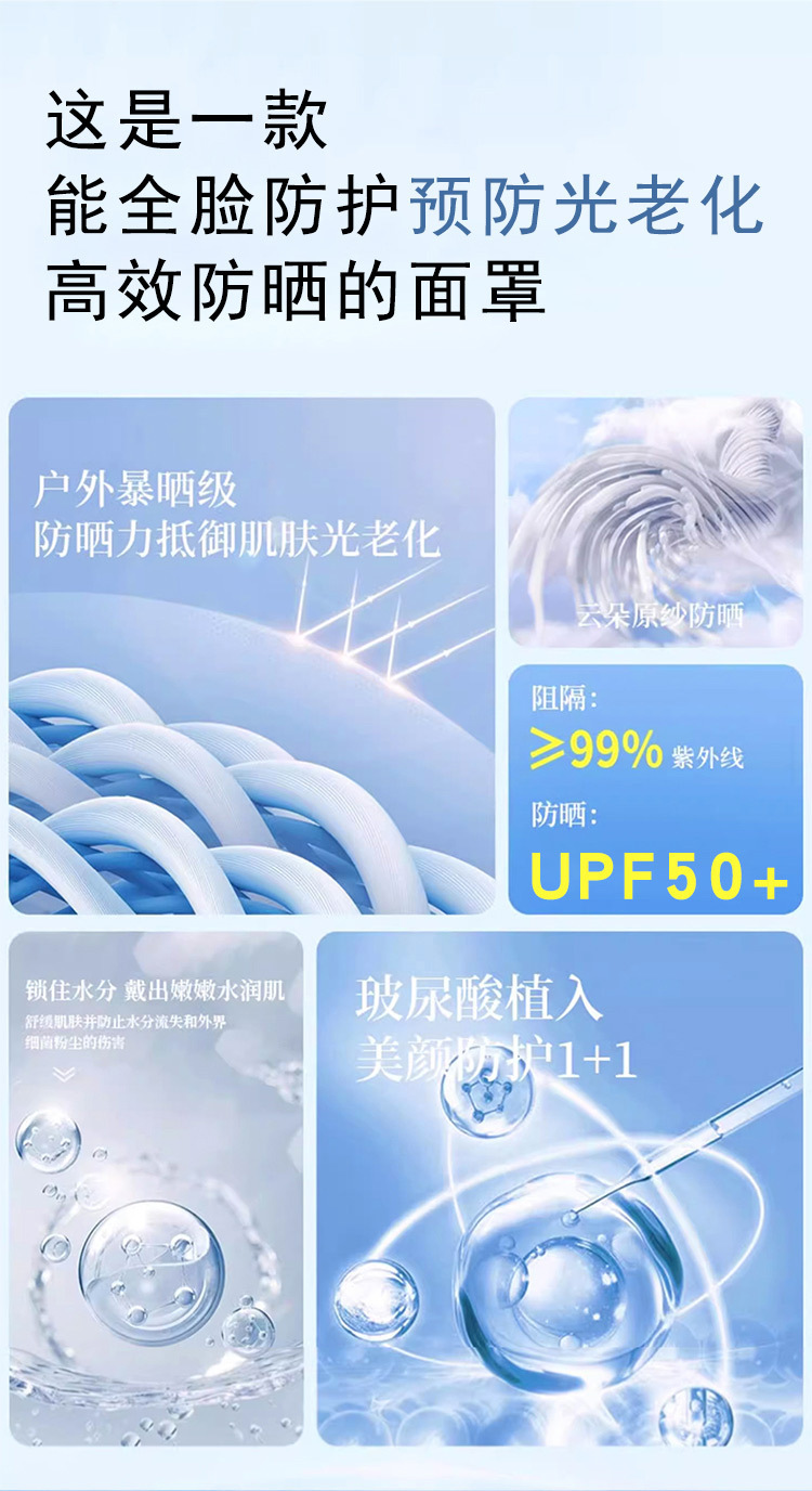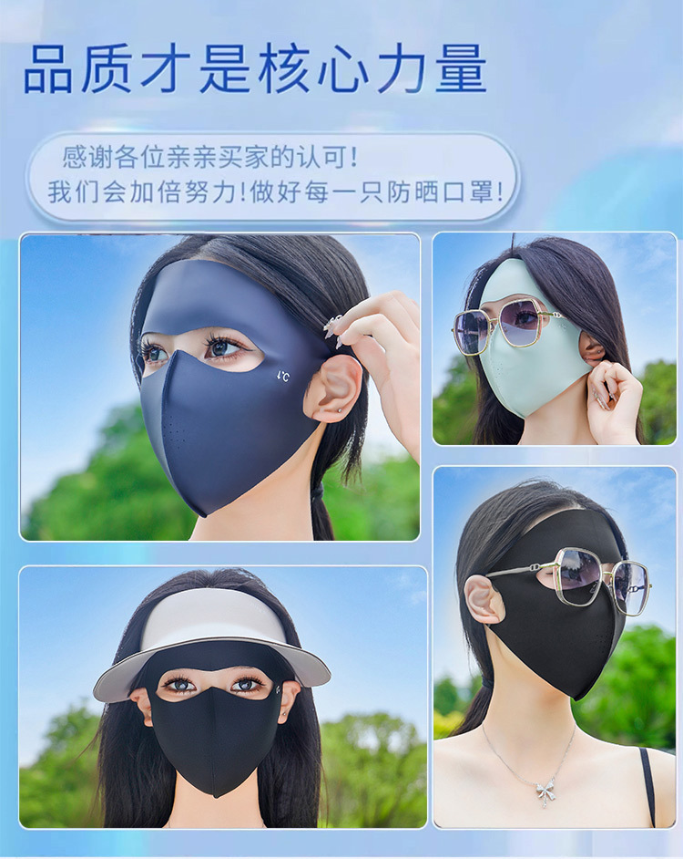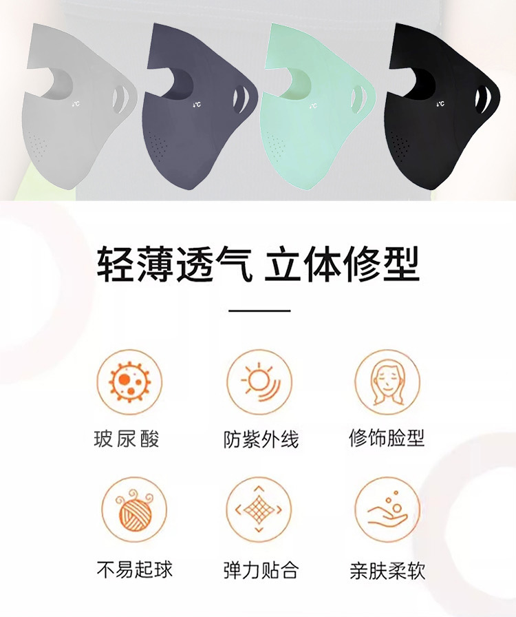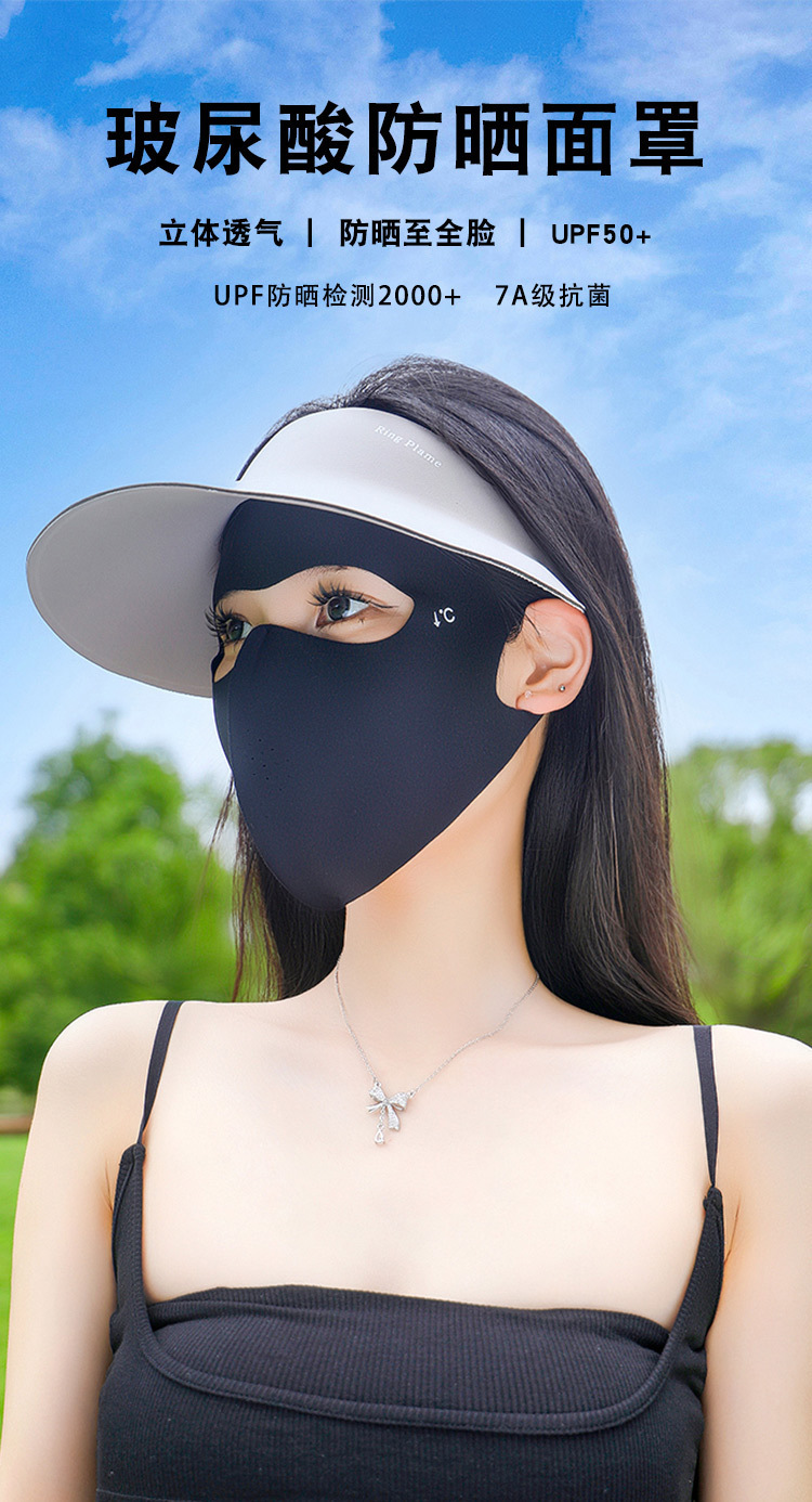 【福利!9.9抢3个!口玻尿酸面罩】夏款玻尿酸脸基尼全脸防晒口罩面罩女夏季防紫外线冰丝轻薄透气护