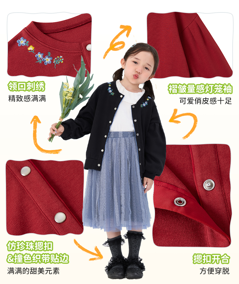 千趣会童装25年秋季新品女童甜美针织外套儿童纯棉春秋开衫上衣