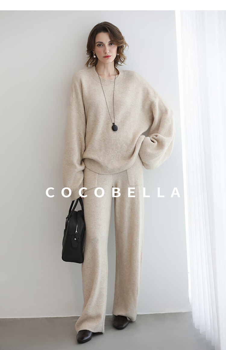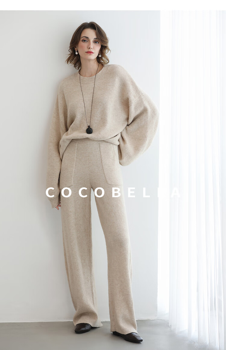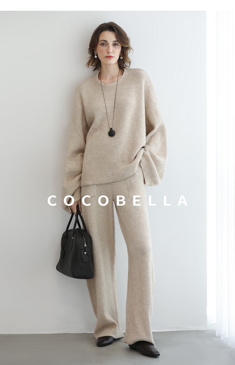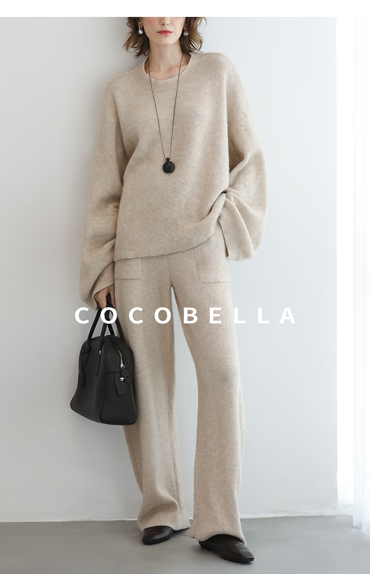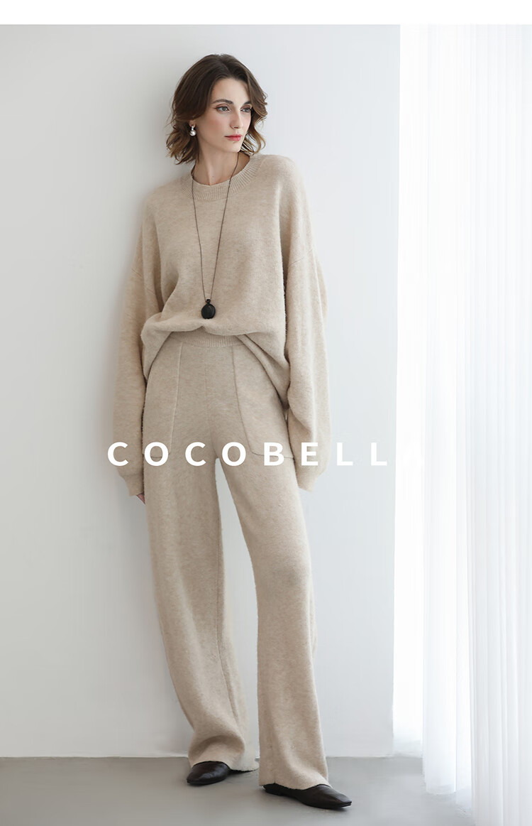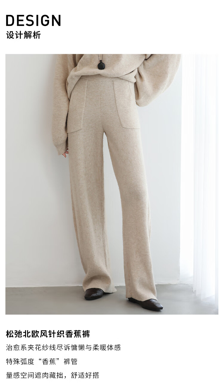 COCOBELLA简约特调花纱色香蕉阔腿裤女直筒针织休闲裤MZ7082