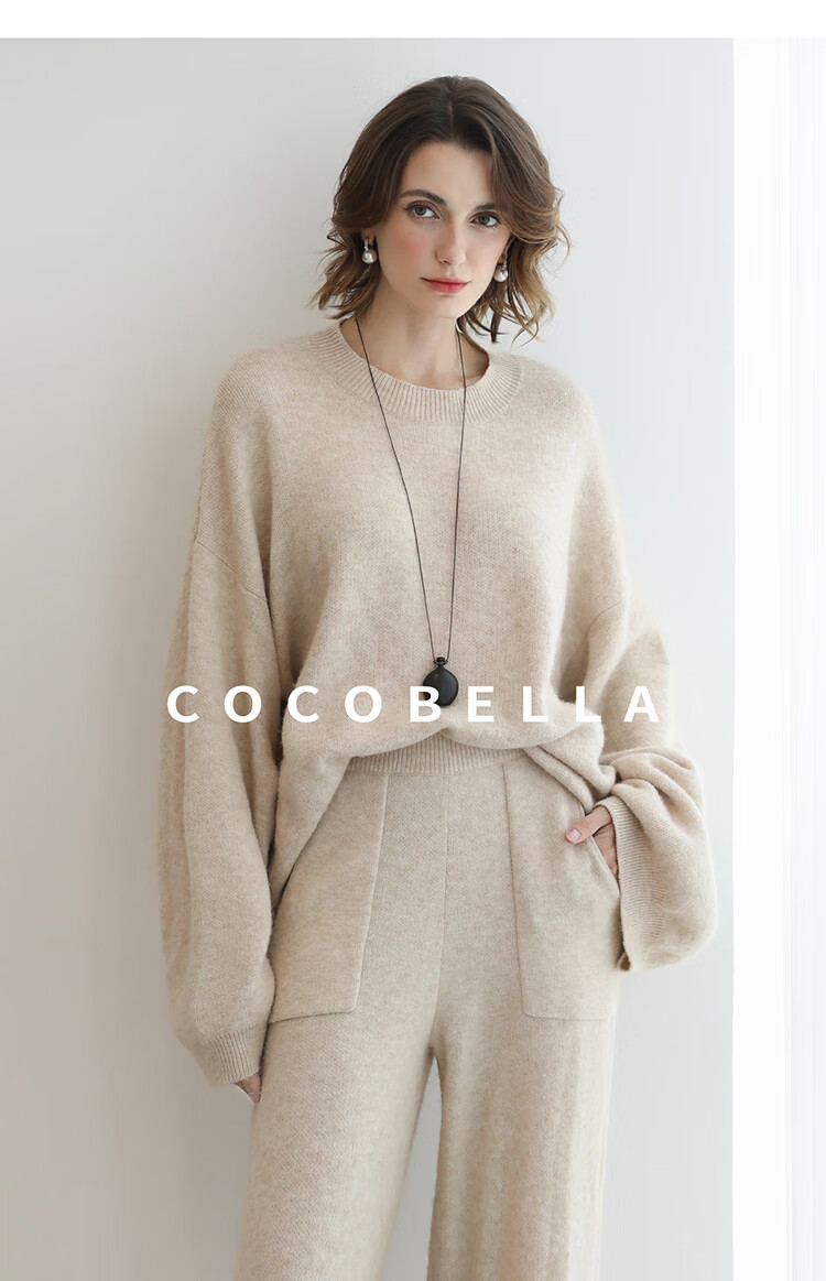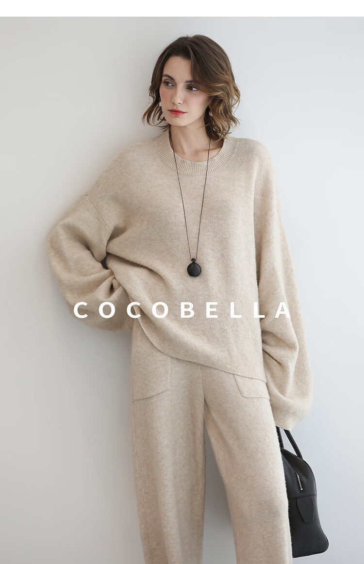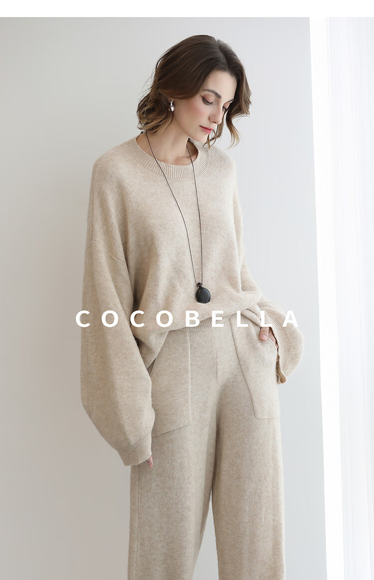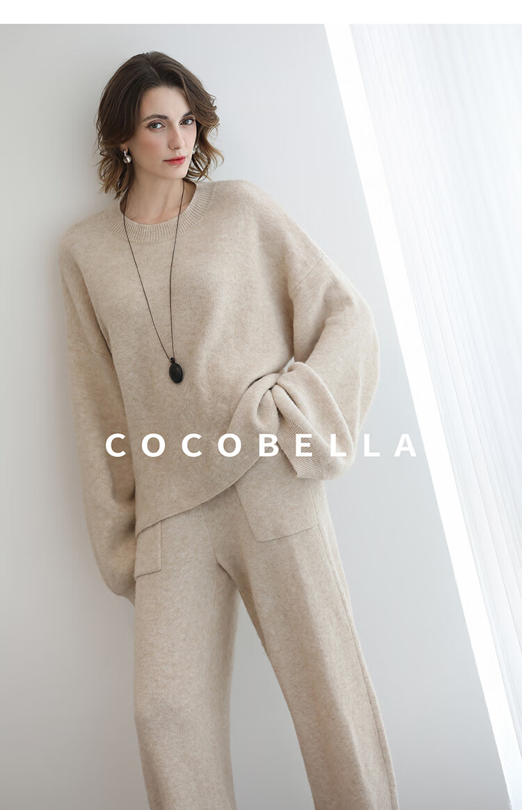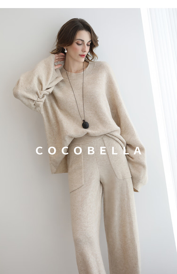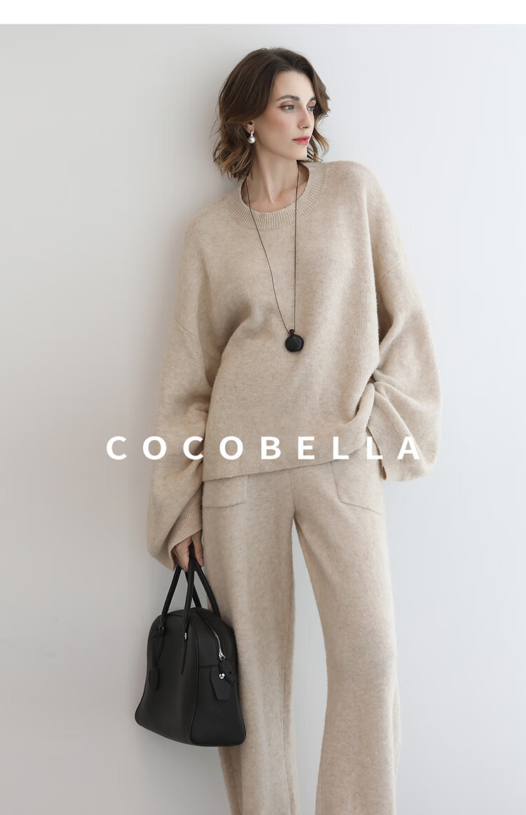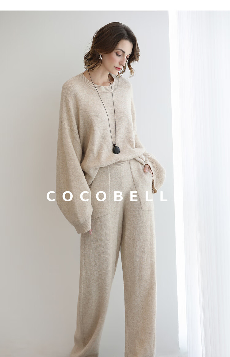 COCOBELLA简约特调花纱色香蕉阔腿裤女直筒针织休闲裤MZ7082