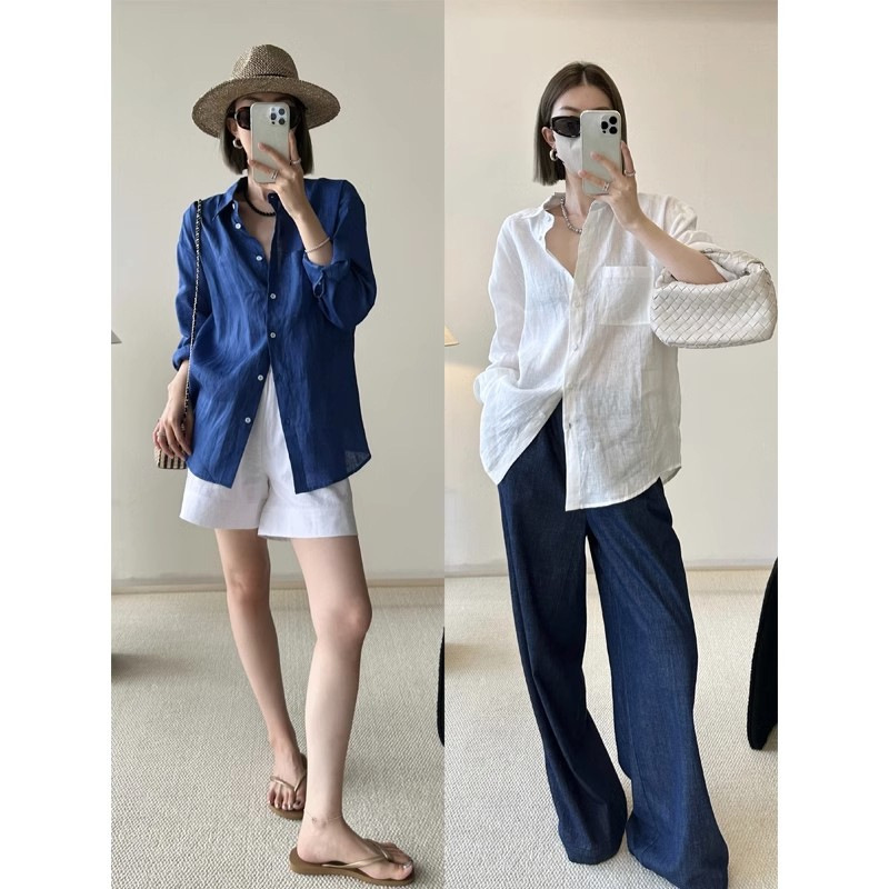 【巨舒适!怎么搭配都好看!!!】法式百搭衬衫防晒上衣,薄款宽松老钱风,开衫外套,细腻亚麻面料,春夏热销单品,让你女神气质倍增,轻松hold住夏日清爽风。