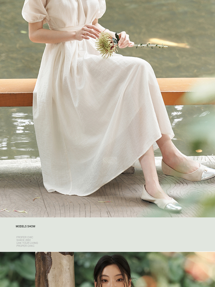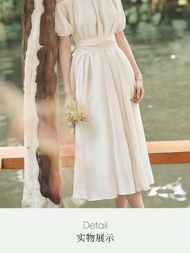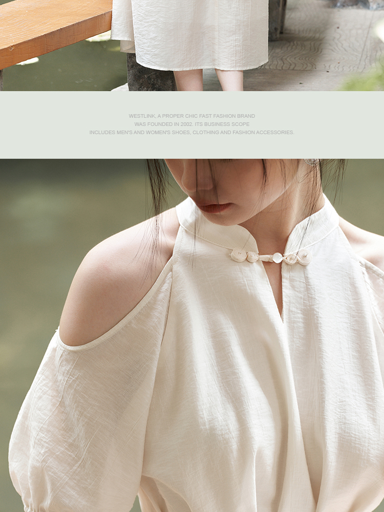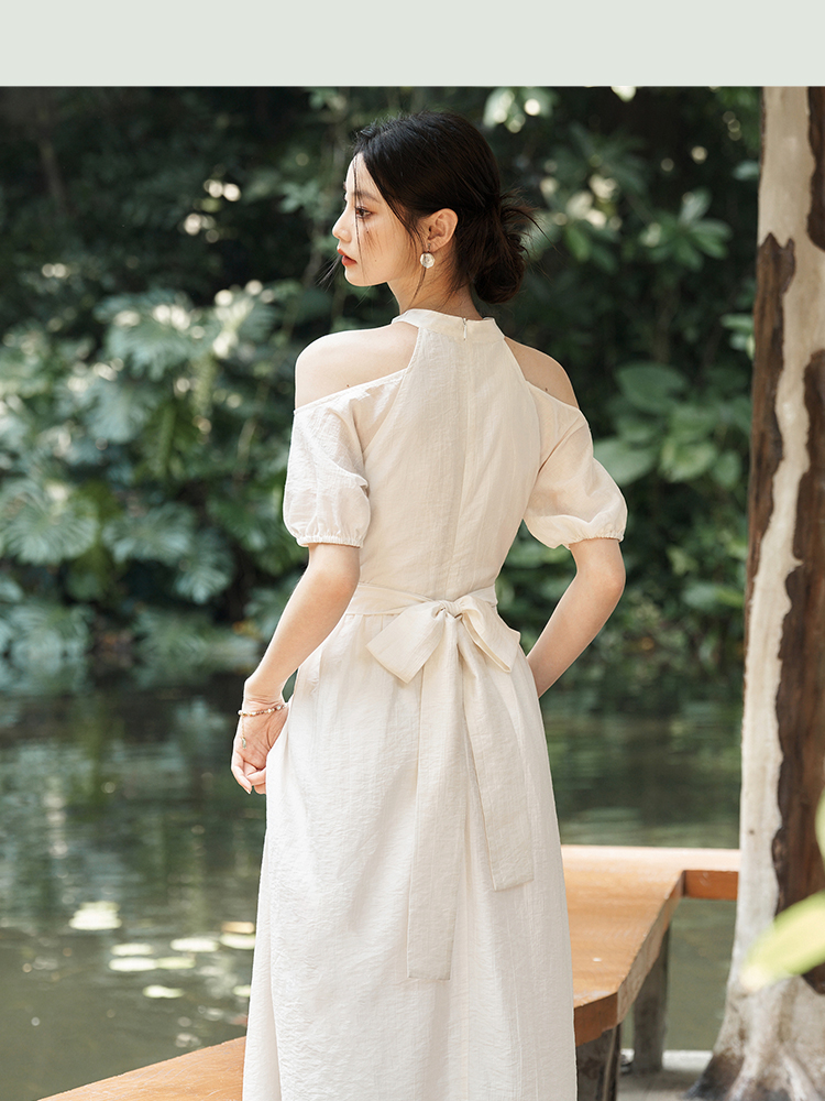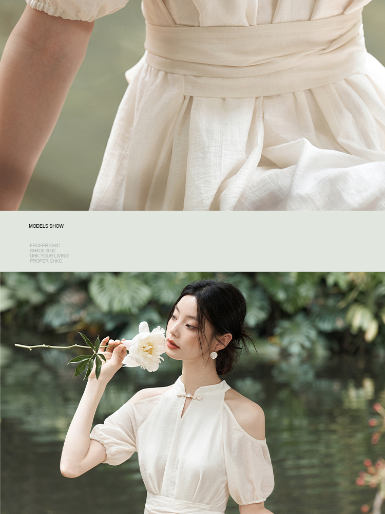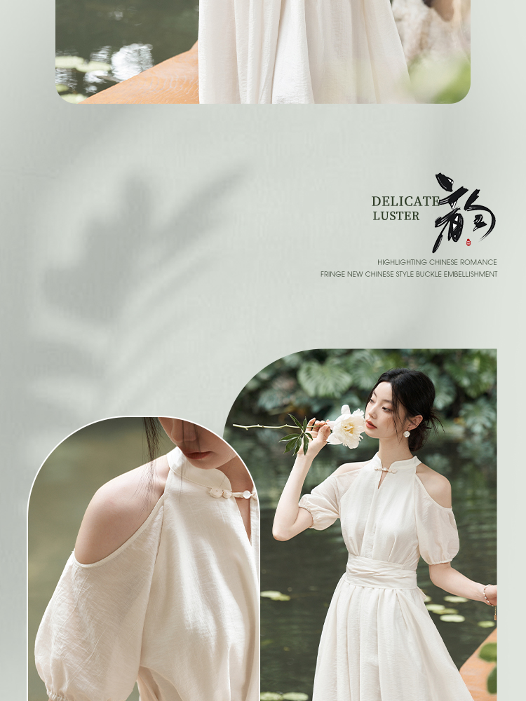 西遇挂脖连衣裙女新款温柔水滴盘扣高腰新中式国风长裙D1941602