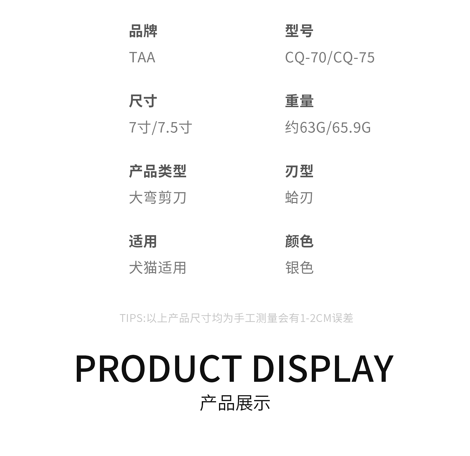 TAA它它宠物美容弯剪CQ-70/CQ-75脸部修圆