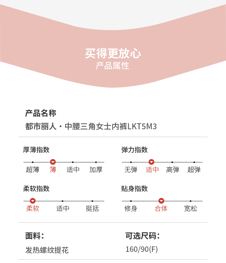都市丽人内裤纤柔绵三角裤发热螺纹提花女士内裤LKT5M3