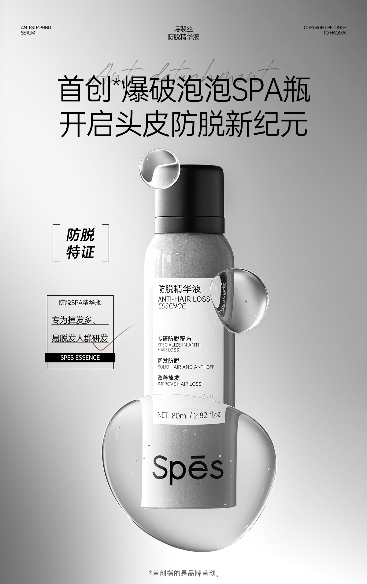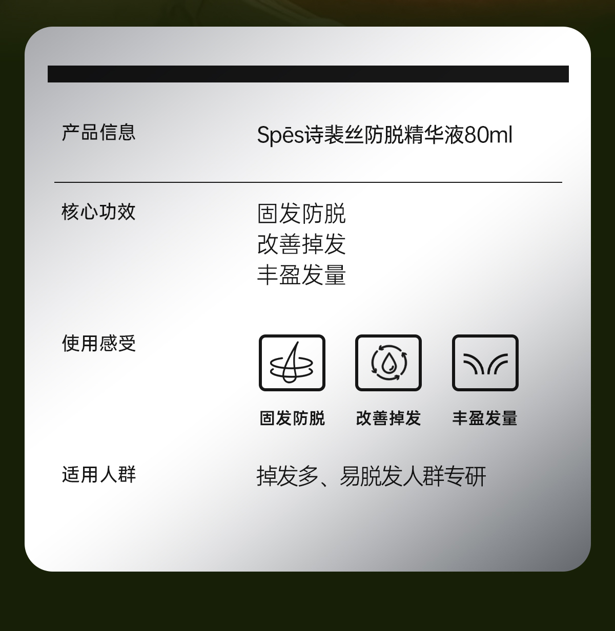 【防脱特证】Spēs诗裴丝防脱精华液80ml 真人实测掉发-59.85%(不与店铺其他活动叠加)