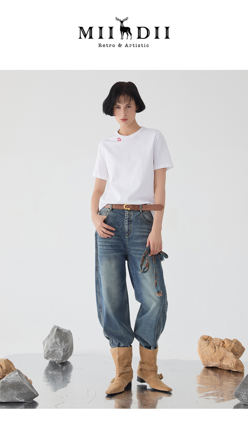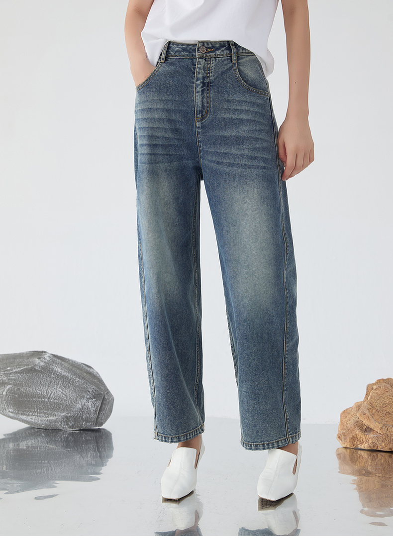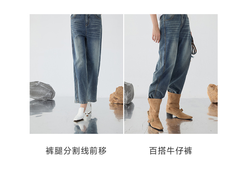 谜底牛仔直筒裤女2025春新品复古风水洗宽松牛仔九分裤251MK0077