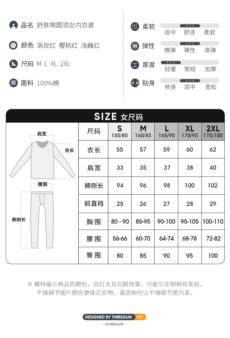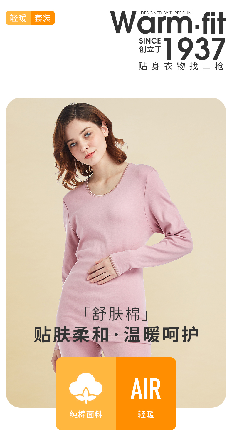 Threegun三枪 【舒肤棉】圆领女士保暖内衣套装-23704D021