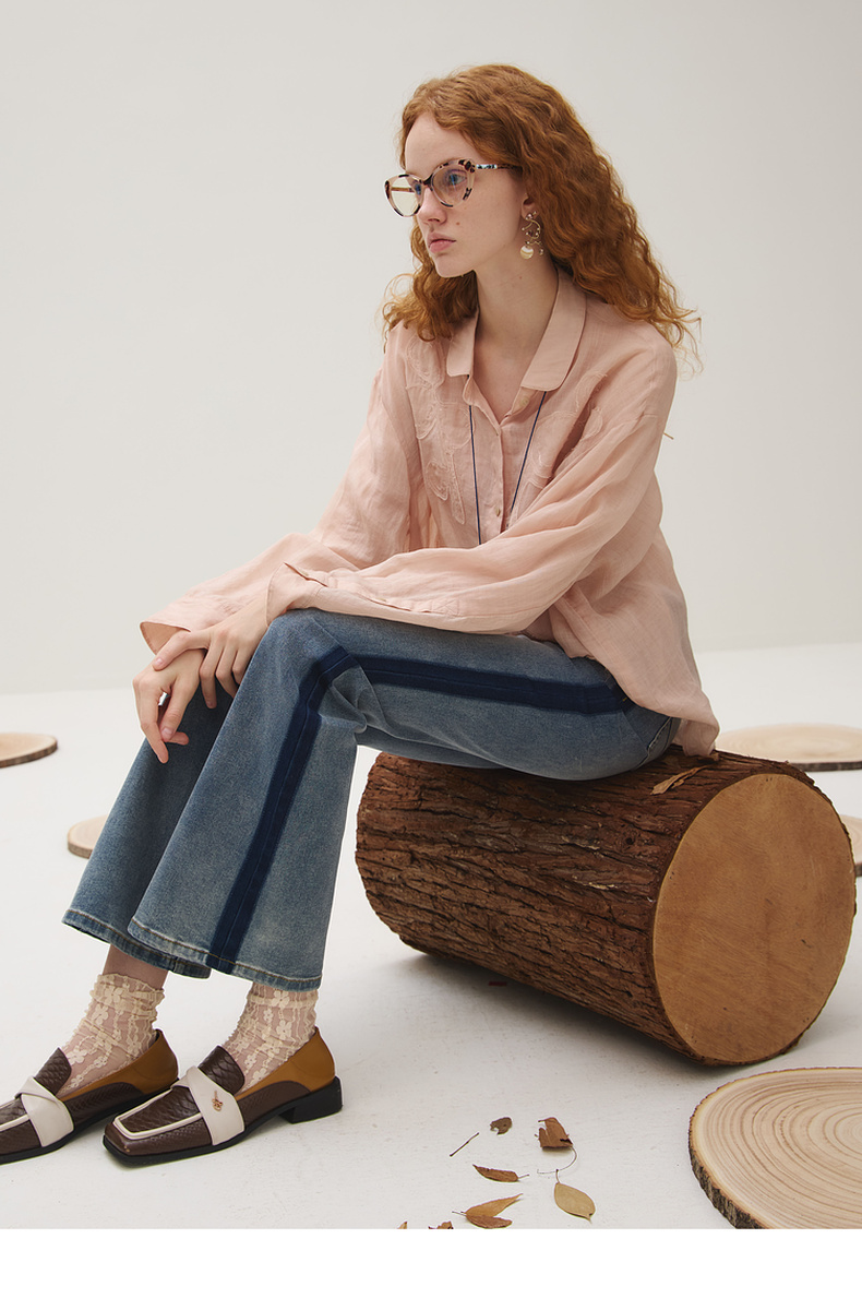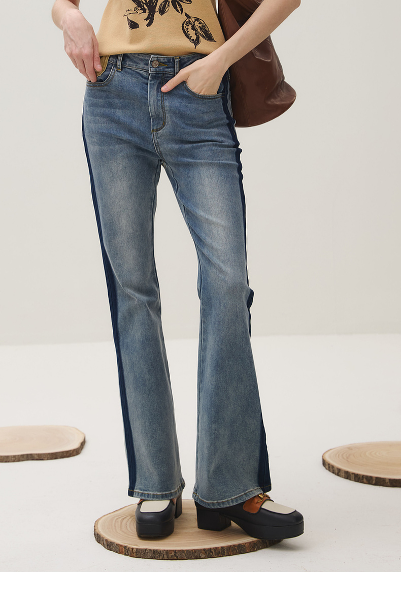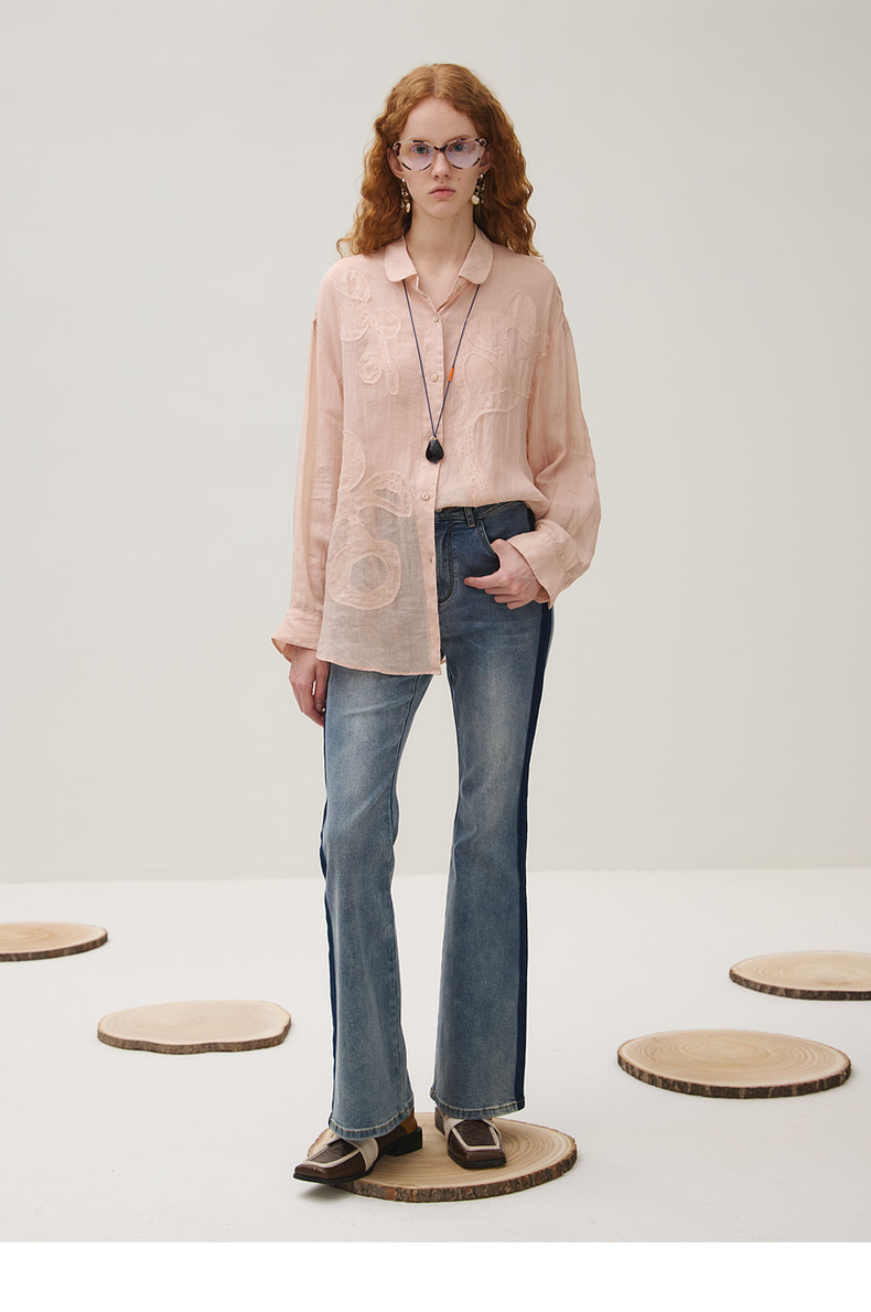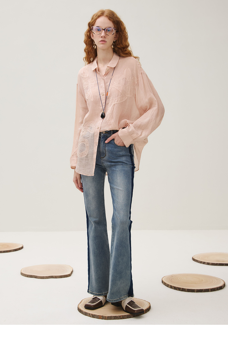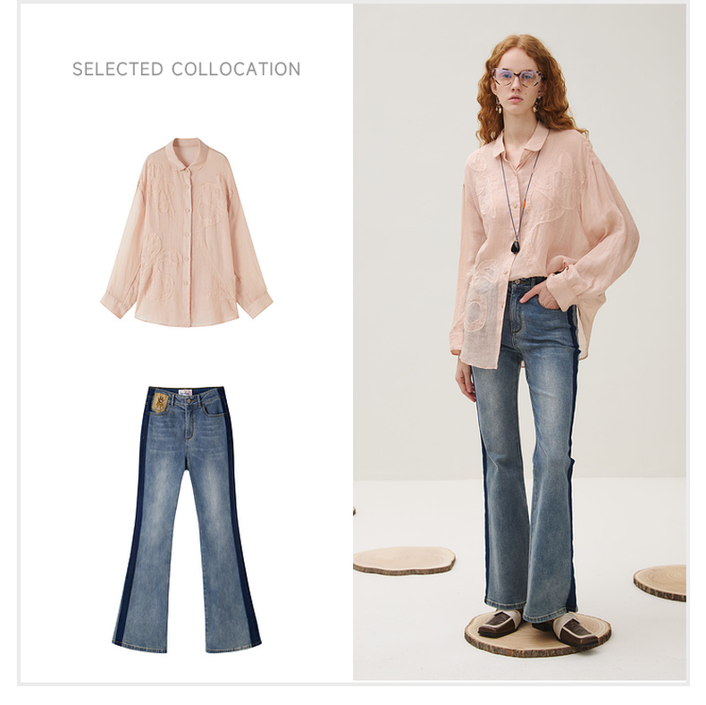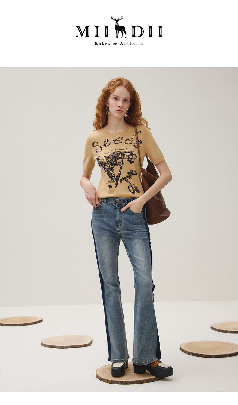 谜底牛仔裤长裤女2025秋新品复古阴影设计贴布绣喇叭裤253MK1233