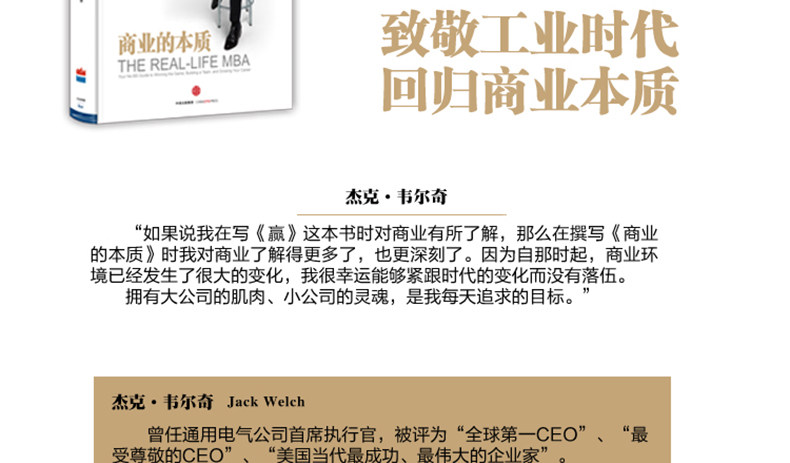 韦尔奇曾出版享誉全球的经典书籍《杰克·韦尔奇自传》与《赢》。此次,全新的作品《商业的本质》不仅是《赢》的延续,更是升华。