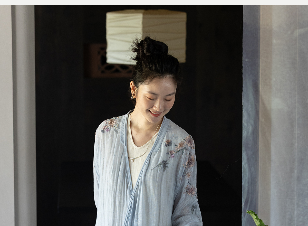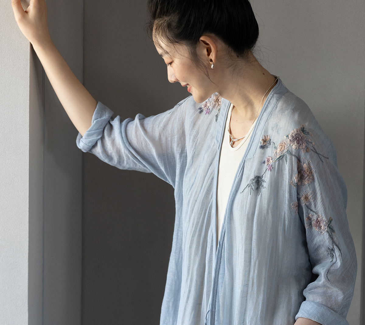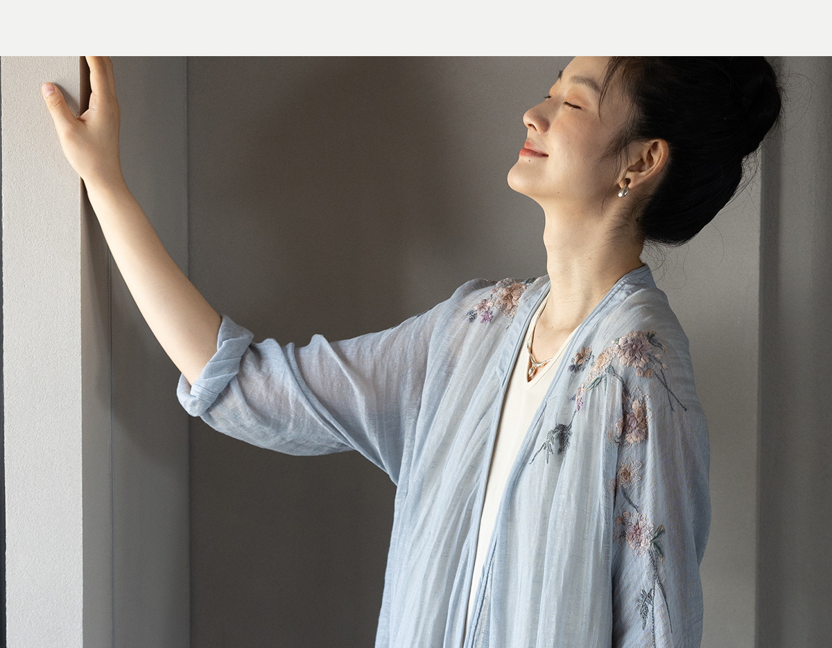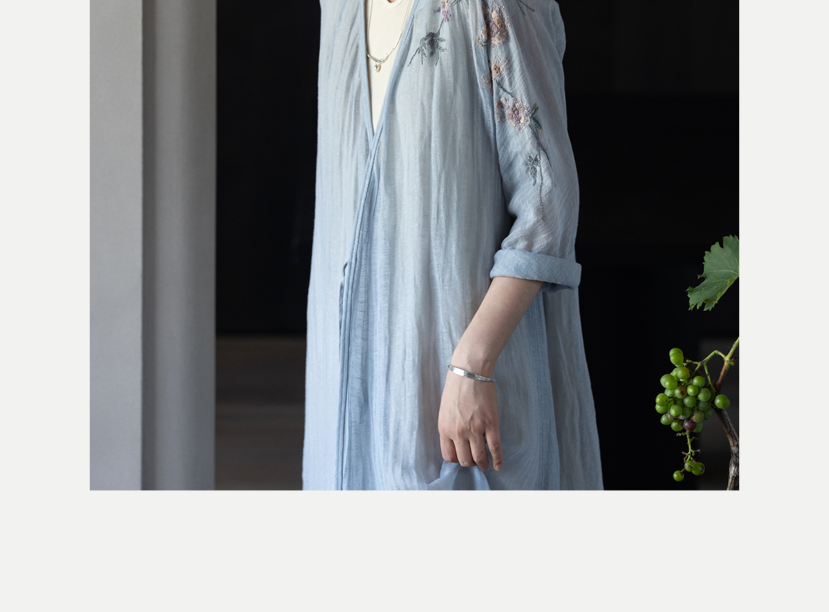 牧衣游刺绣棉麻混织风衣轻薄禅意宽松外套 春山暮