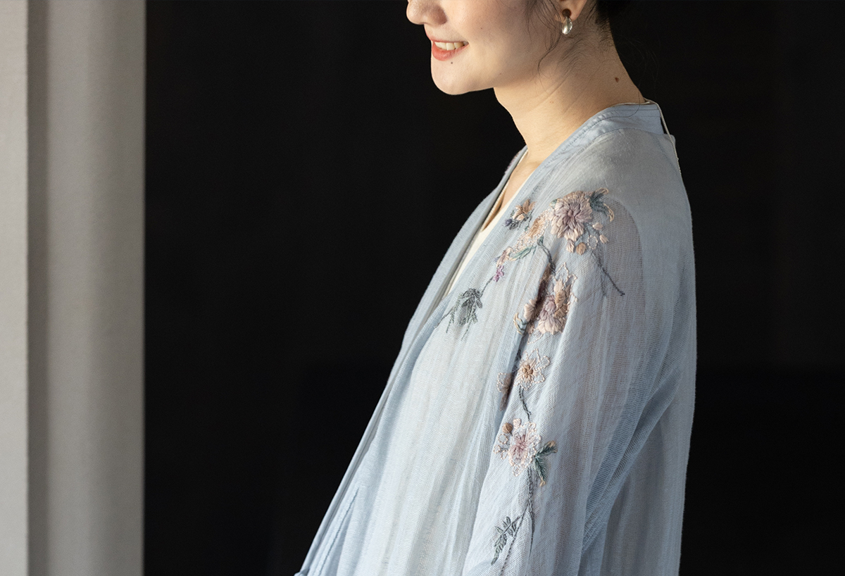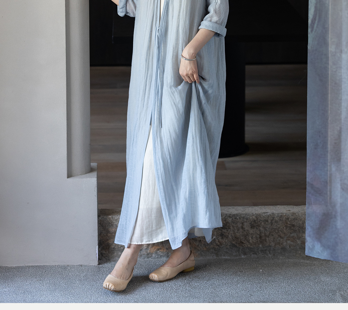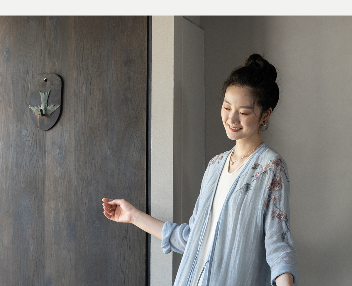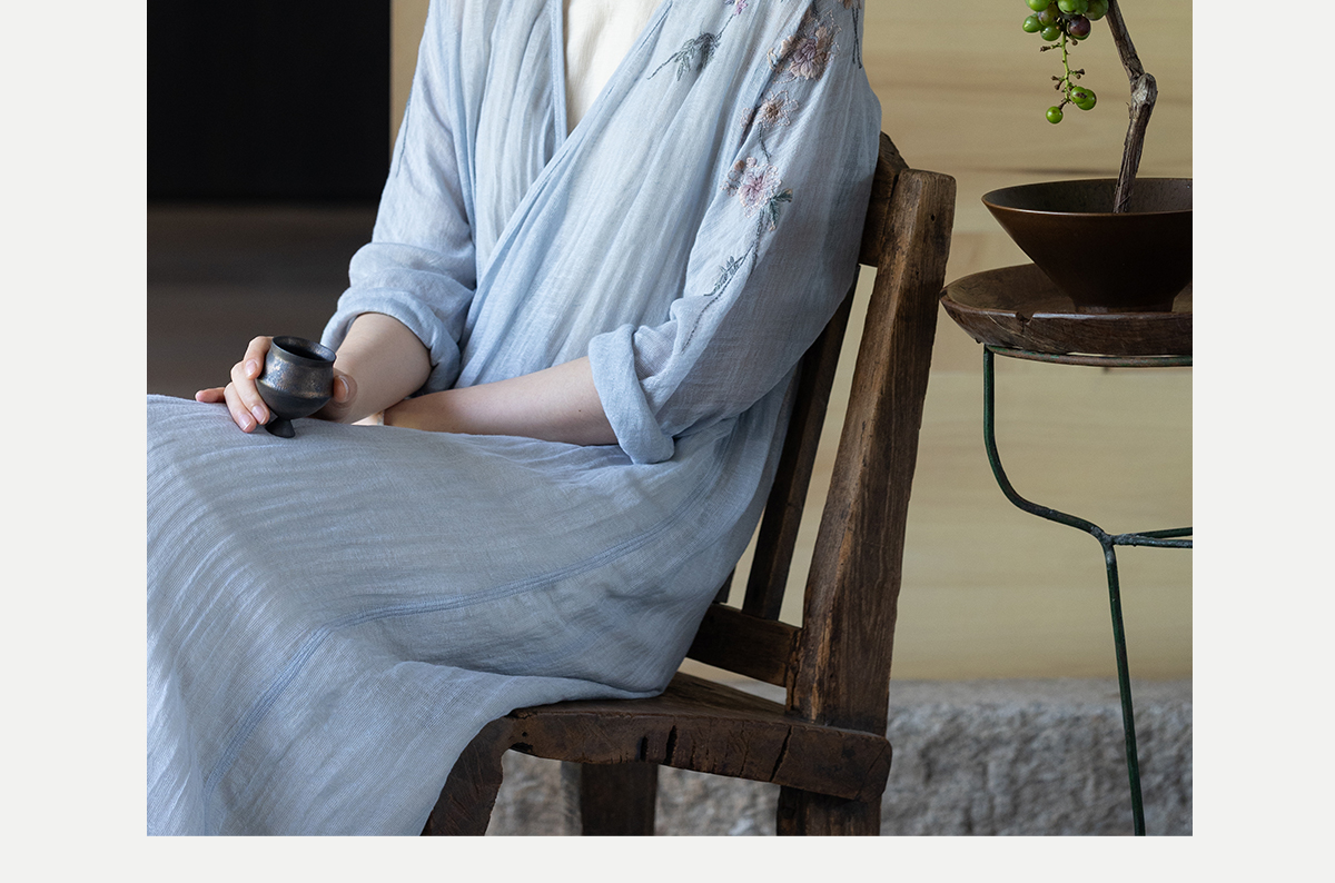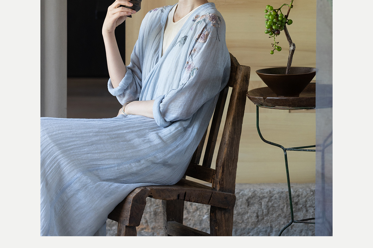 牧衣游刺绣棉麻混织风衣轻薄禅意宽松外套 春山暮