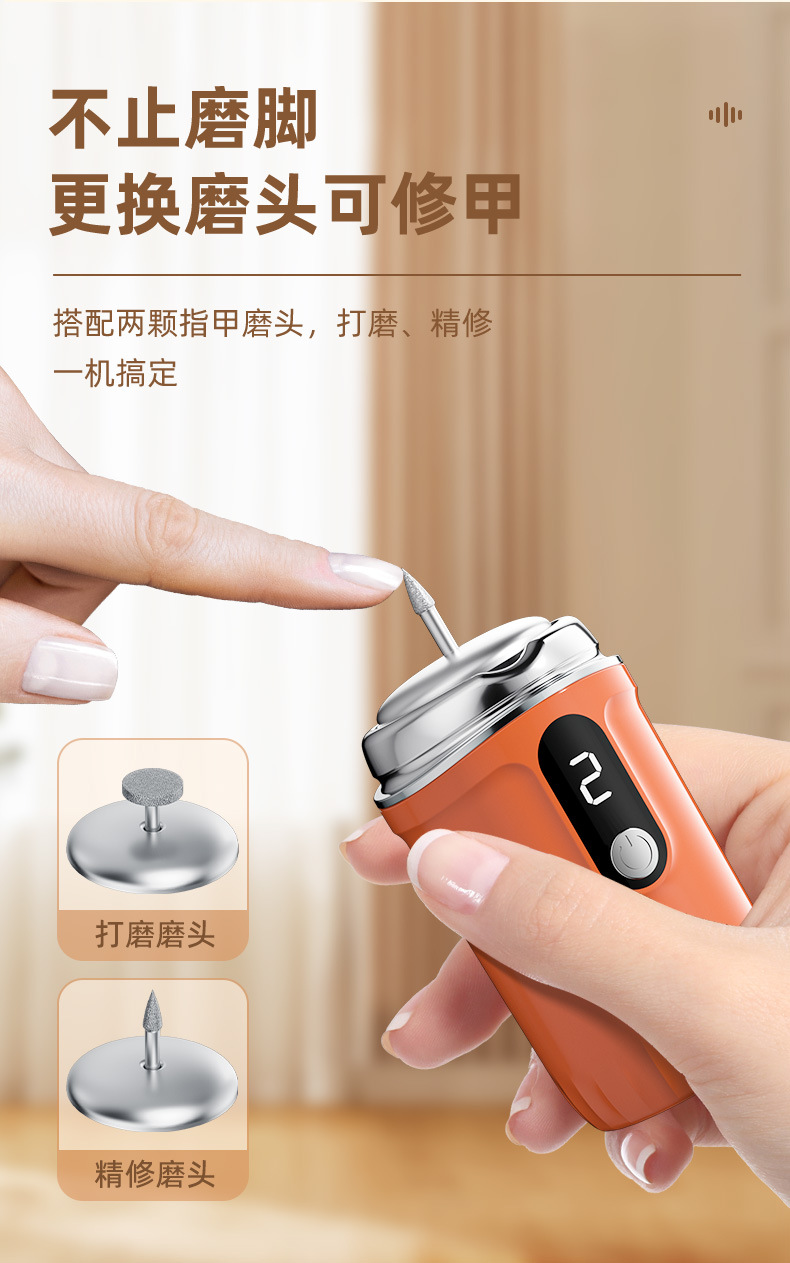 多功能电动磨甲器磨脚器一体可换磨头便携式美甲打磨器去死皮老茧 商品图5