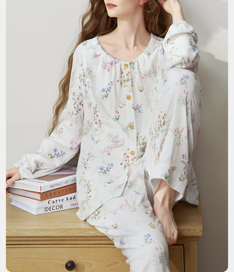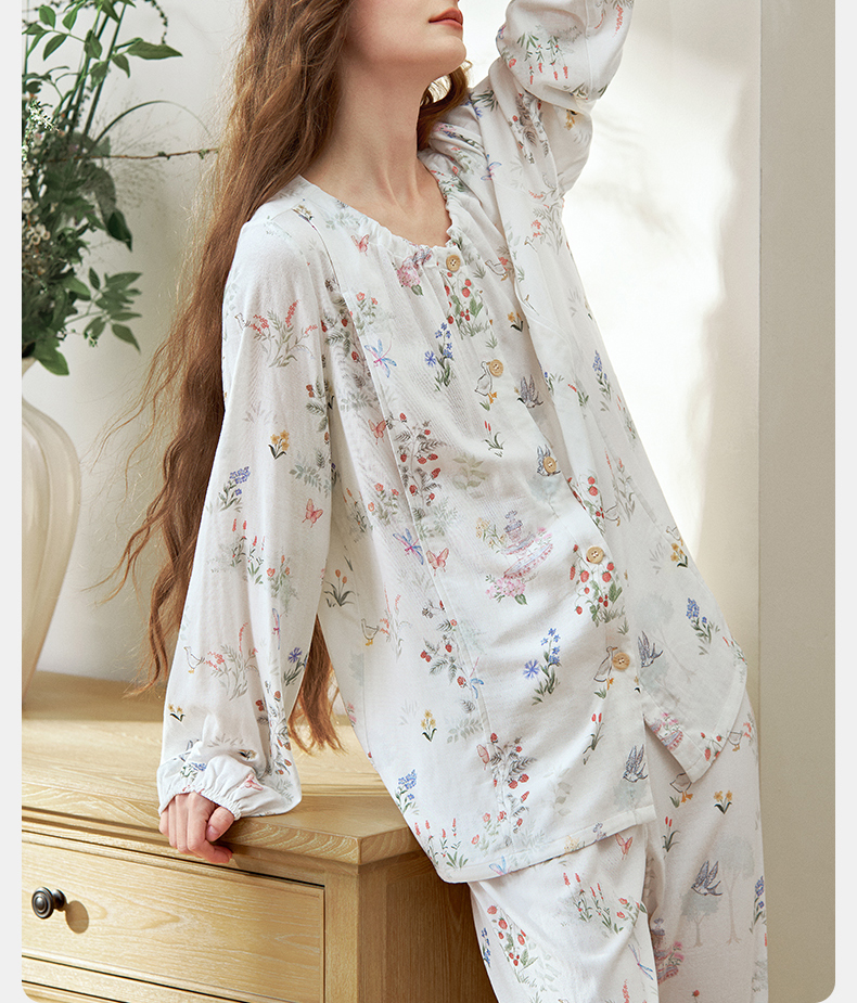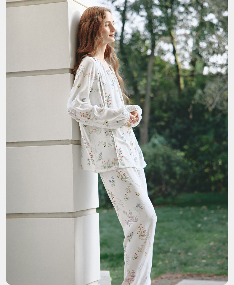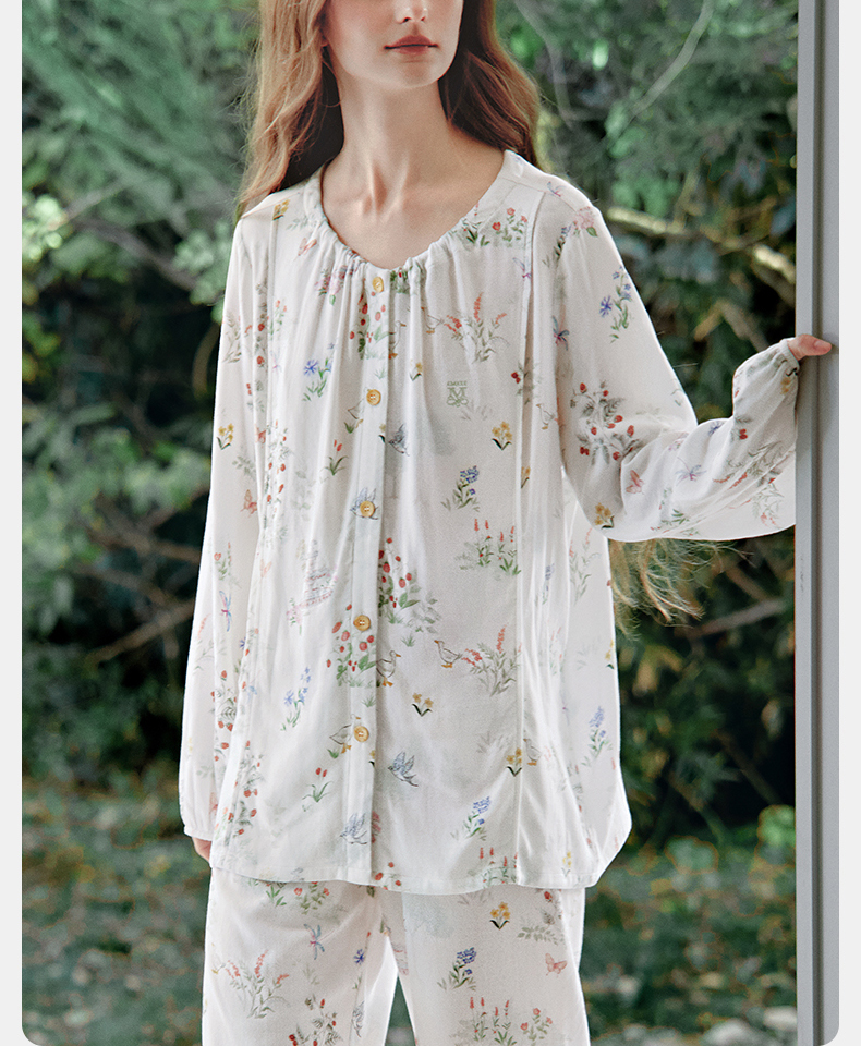 【家居服专场】苗苗同款-嫚熙春秋季孕妇哺乳睡衣产后弹力丝麻棉浅草曼波月子服家居服套装