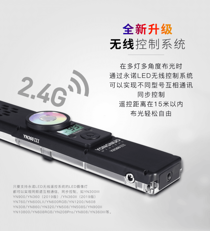 永诺 YN360III三代LED补光灯摄像灯摄影灯手持冰灯抖音灯RGB全彩棒灯 单灯