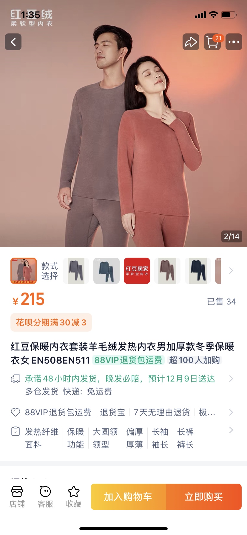 加倍厚,比一般的红豆保暖内衣要厚三倍