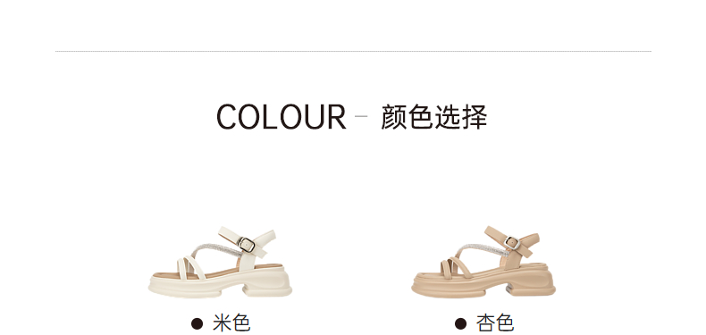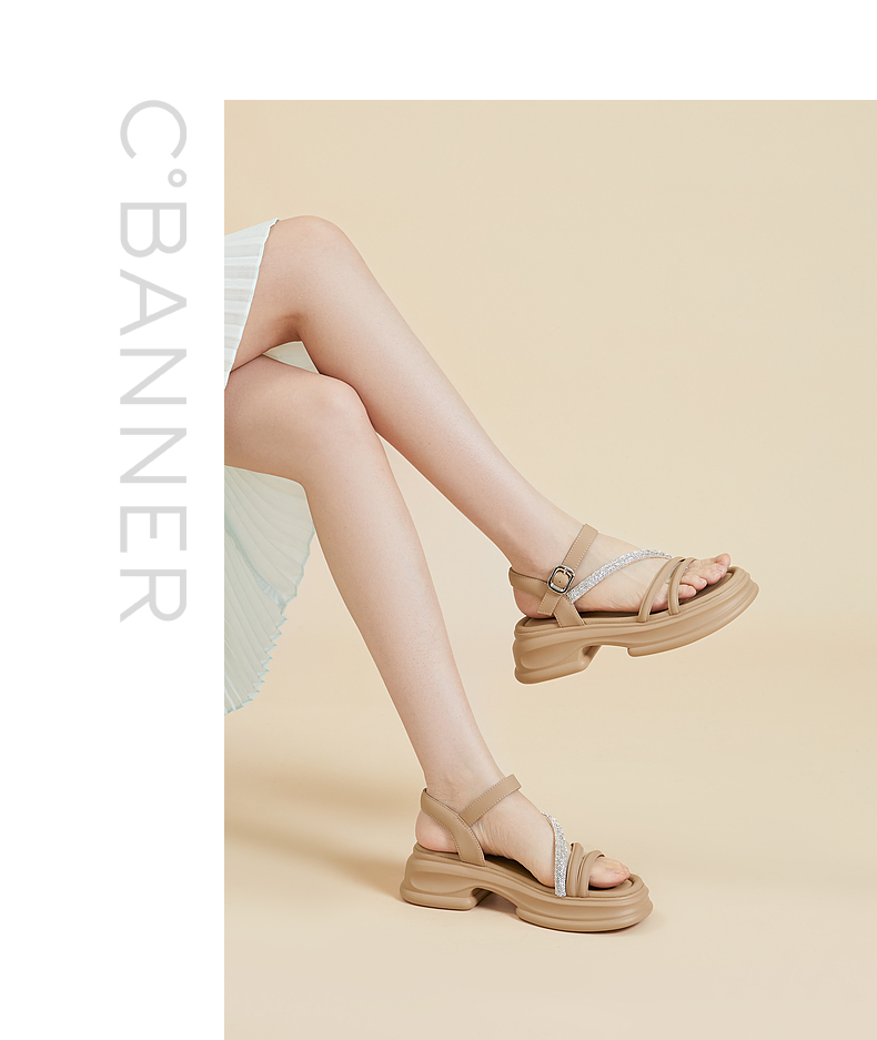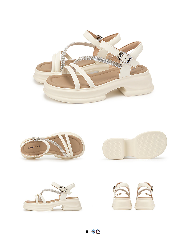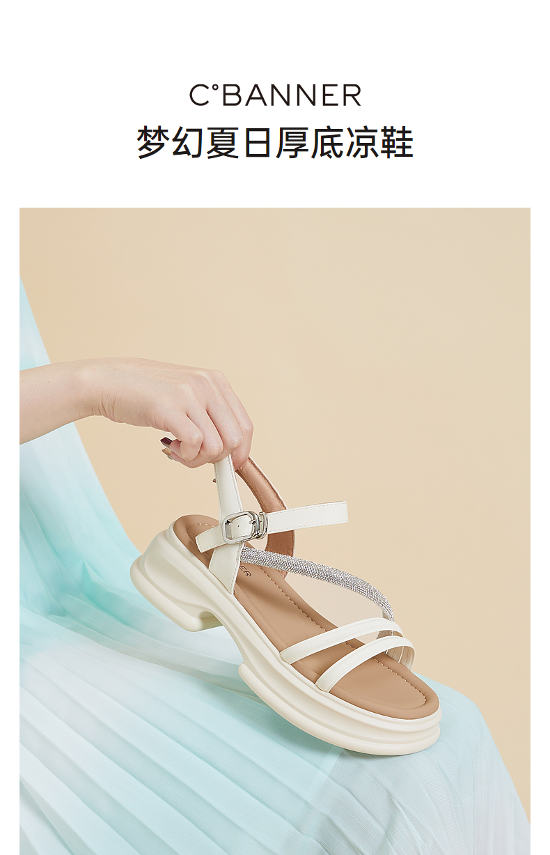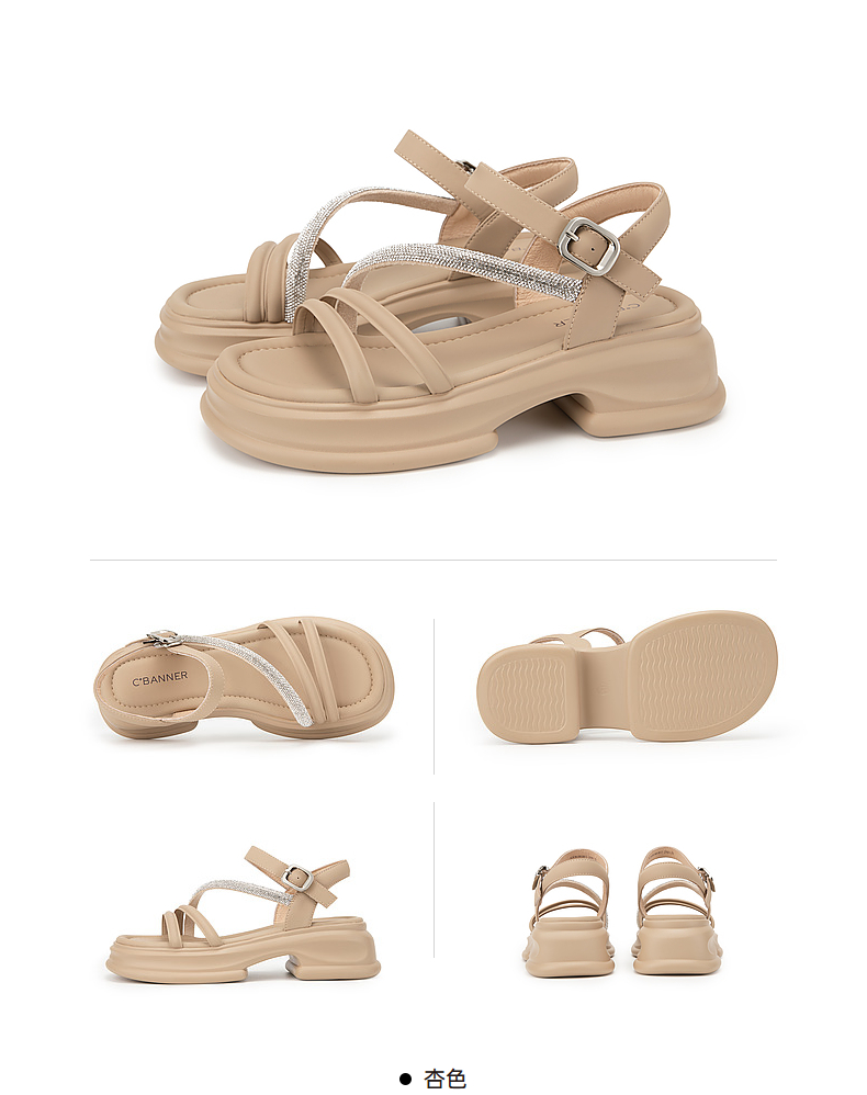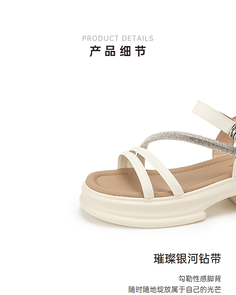 千百度厚底一字带凉鞋女款夏季钻带休闲增高外穿绝美凉鞋A24381081
