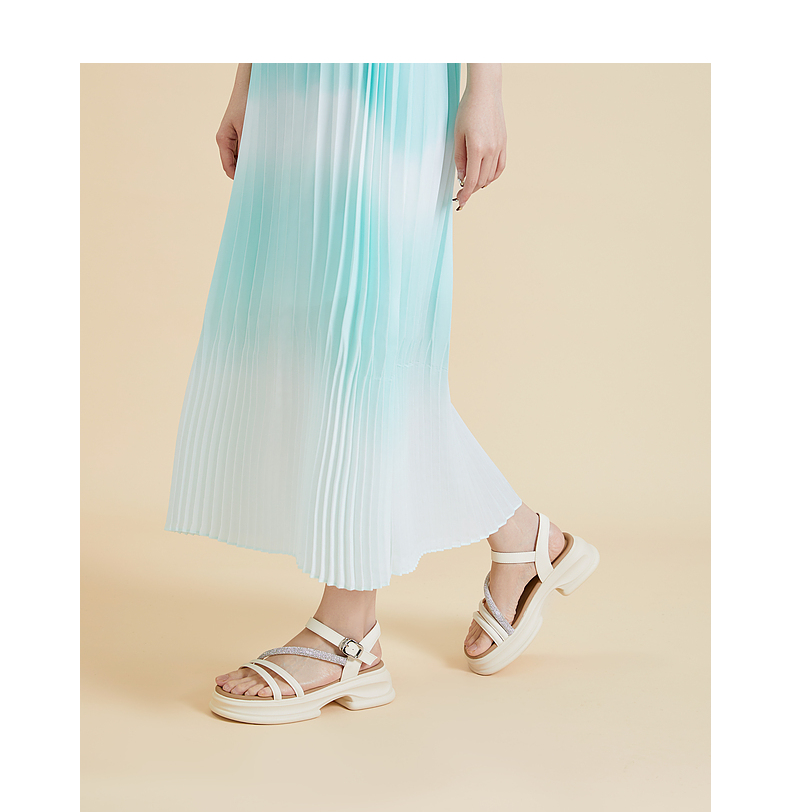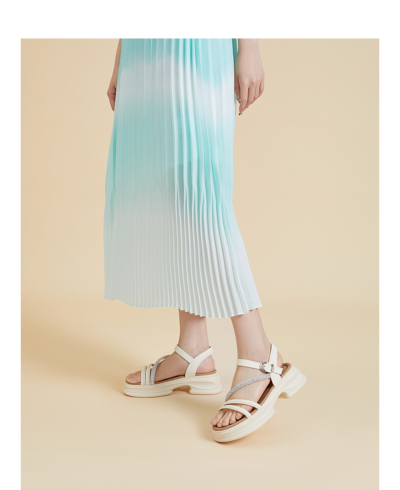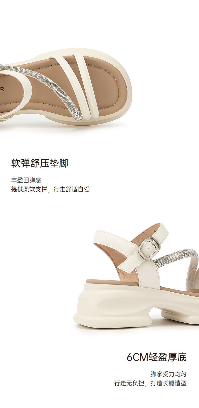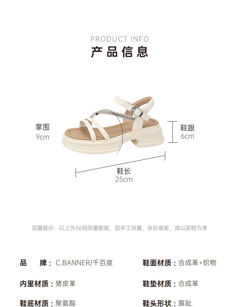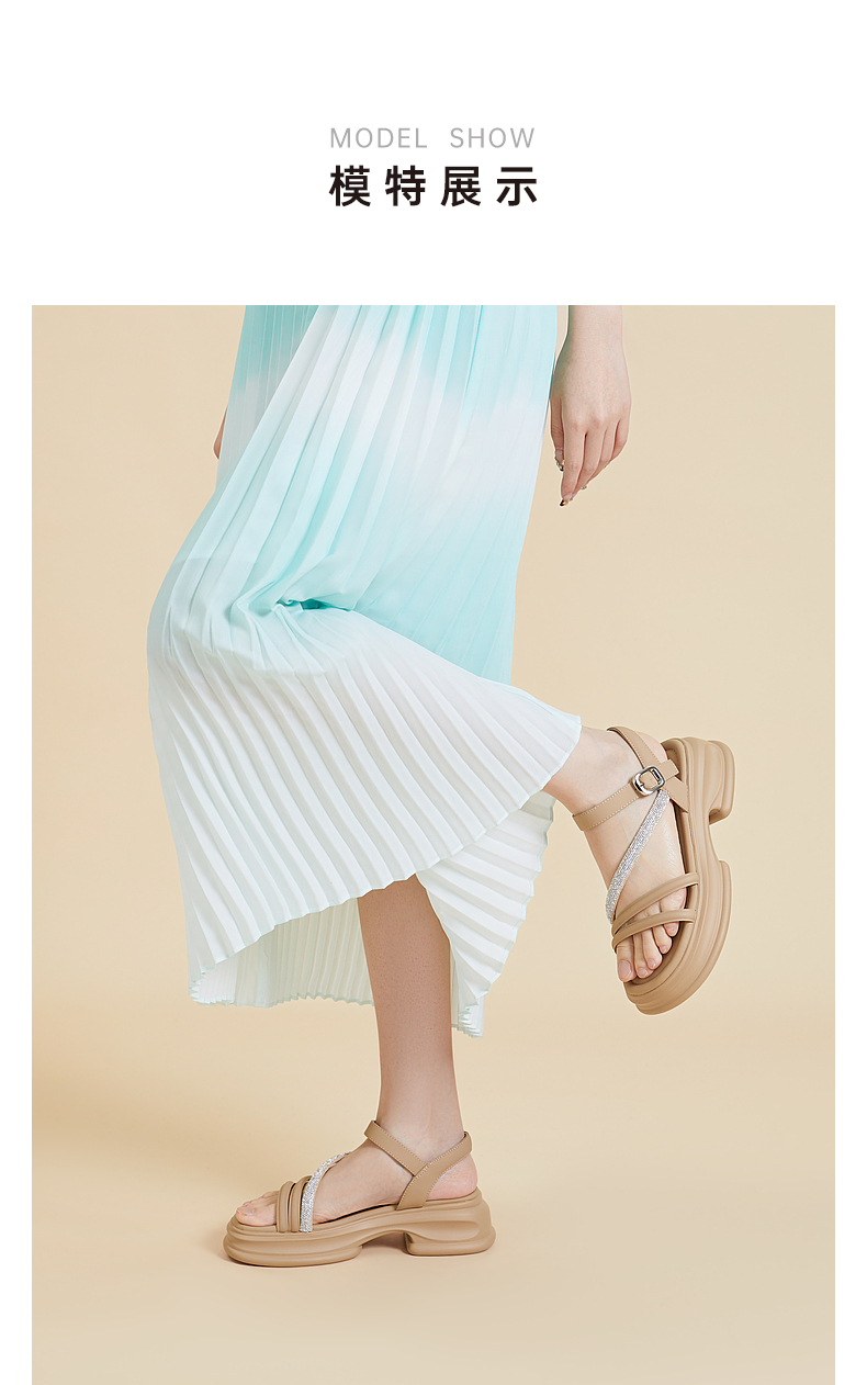 千百度厚底一字带凉鞋女款夏季钻带休闲增高外穿绝美凉鞋A24381081