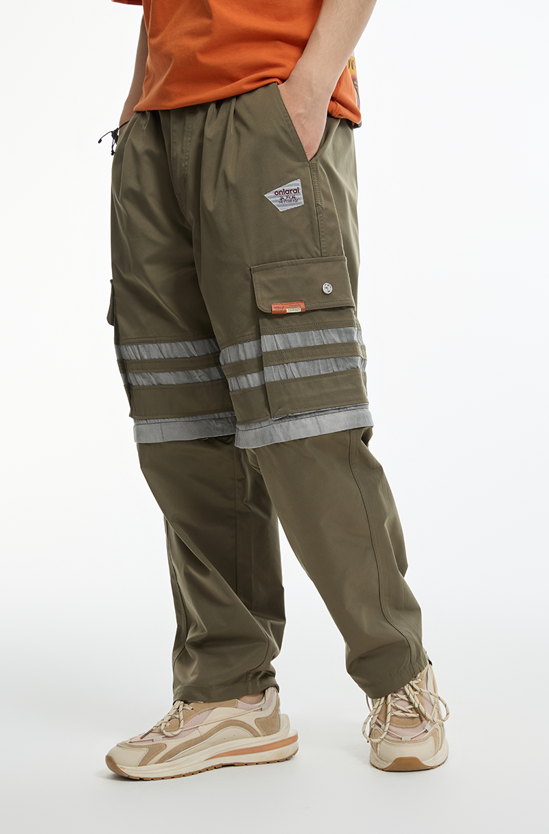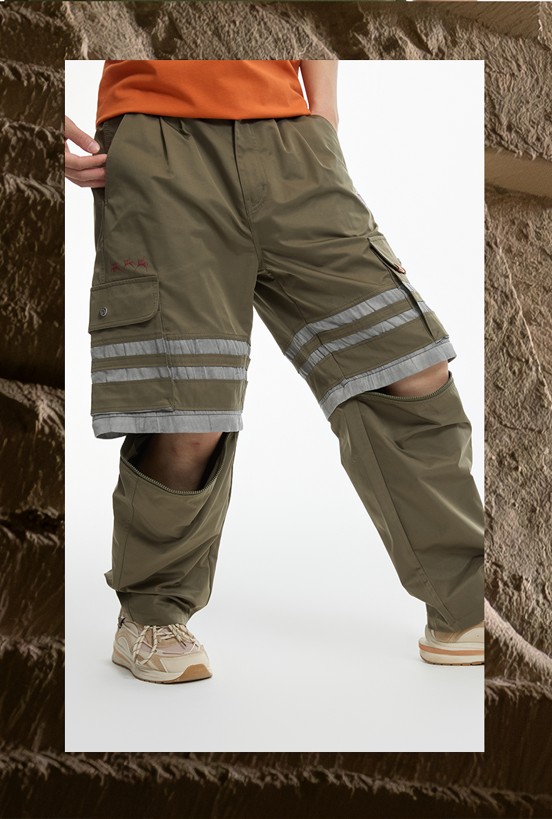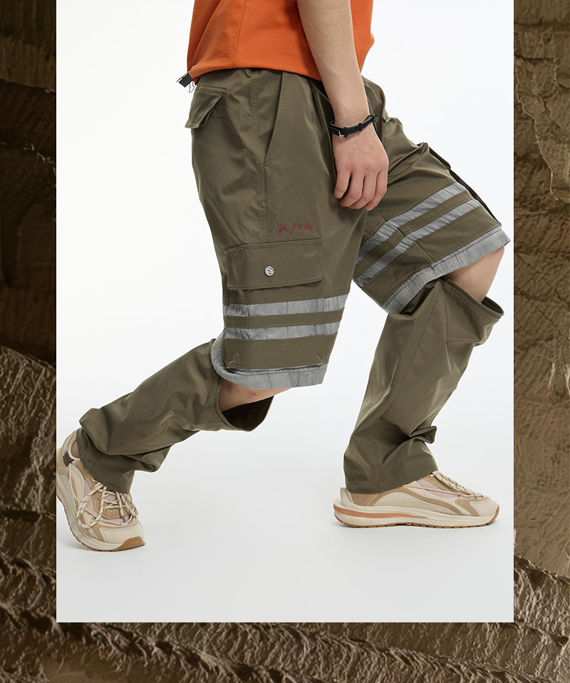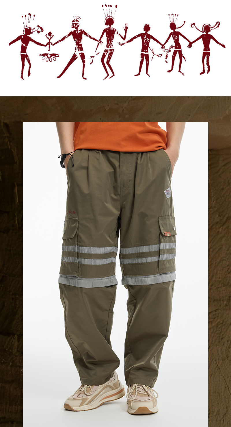 鬼洗24AW石器时代暗裂纹拼布可拆式工装裤 24A7401