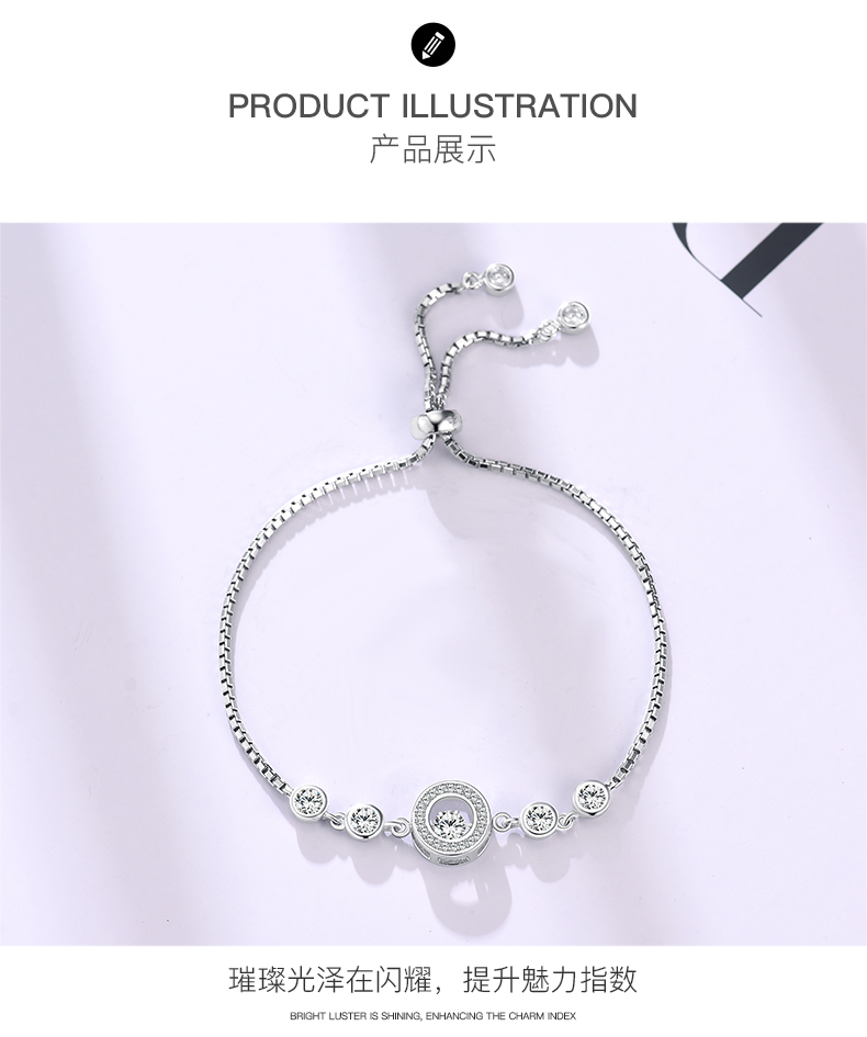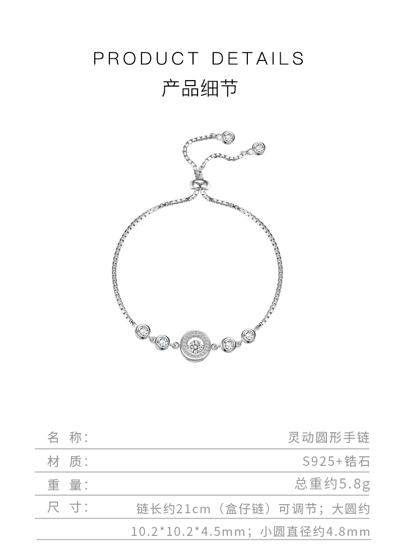 ALLOVE S925银镶锆石灵动五福手链