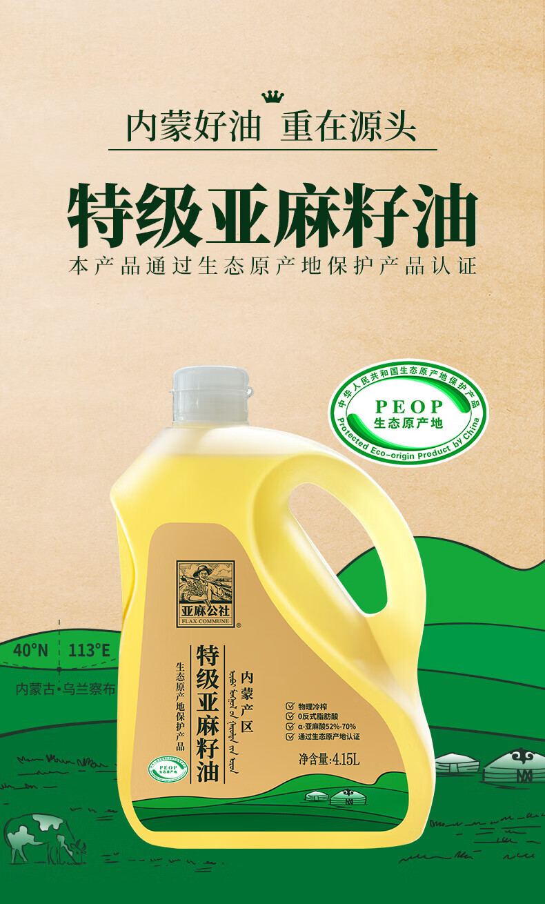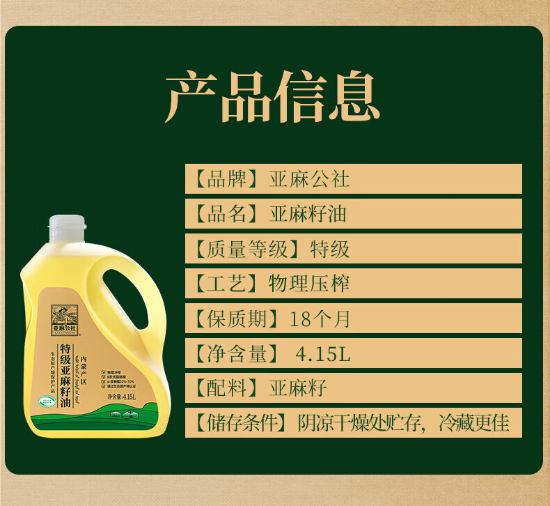 亚麻公社 特级亚麻籽油4.15L/桶 食用油