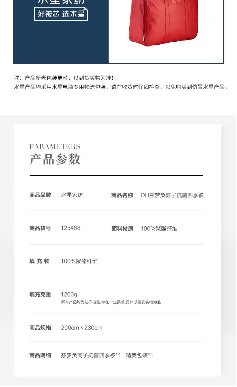 【自营】 水星家纺 芬梦负离子抗菌四季被 水星硅藻净享科技抗菌防异味 被子 200*230cm