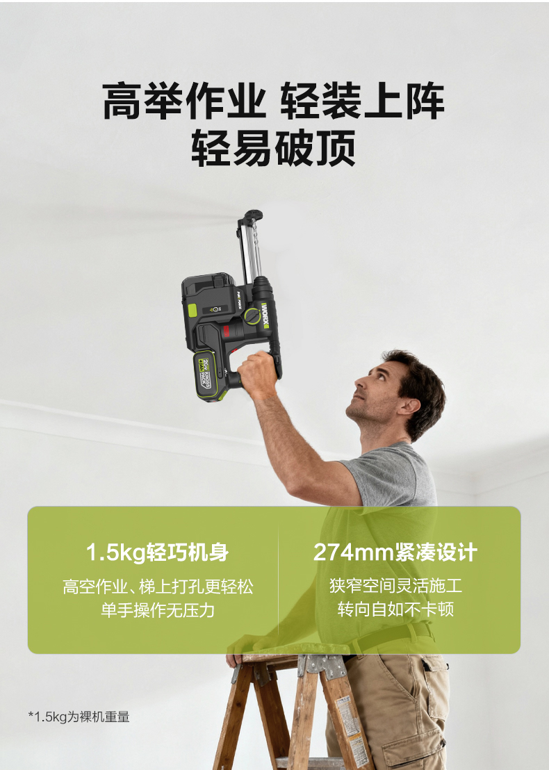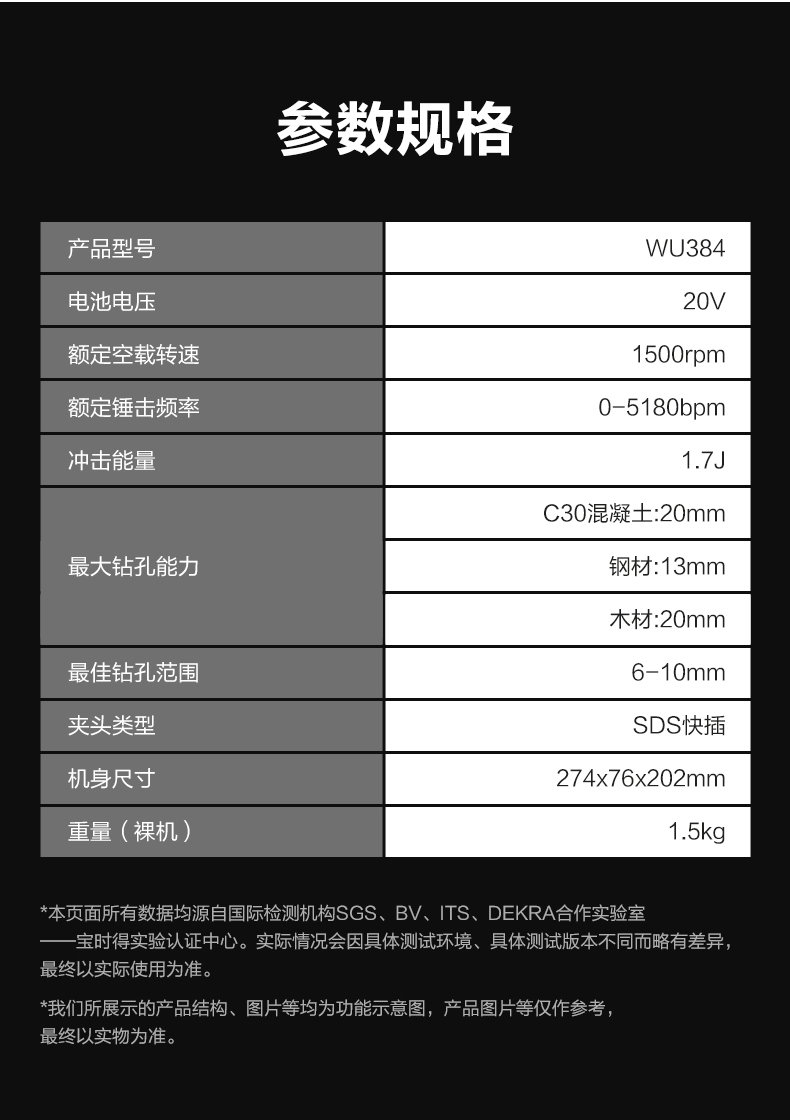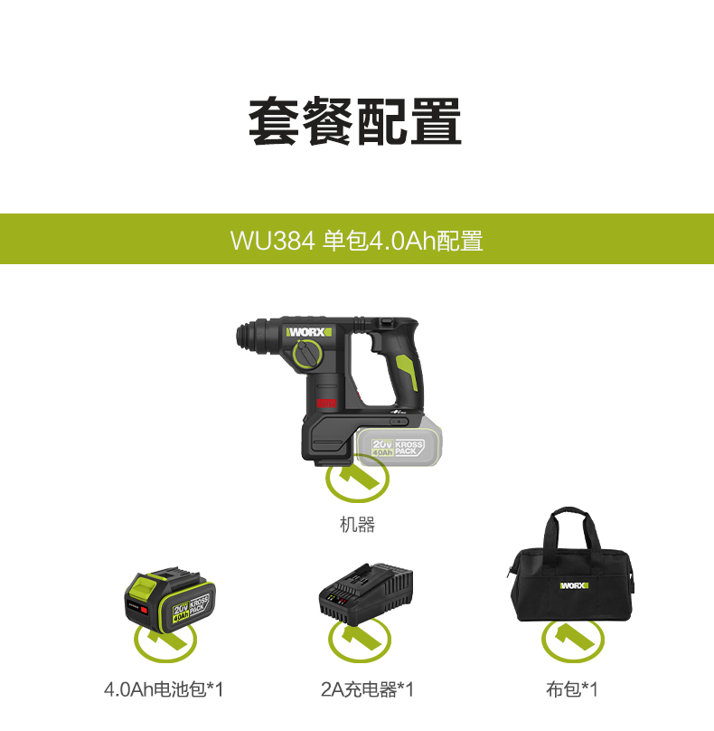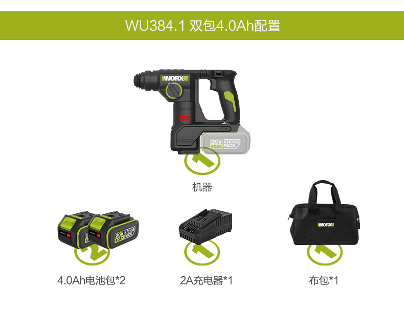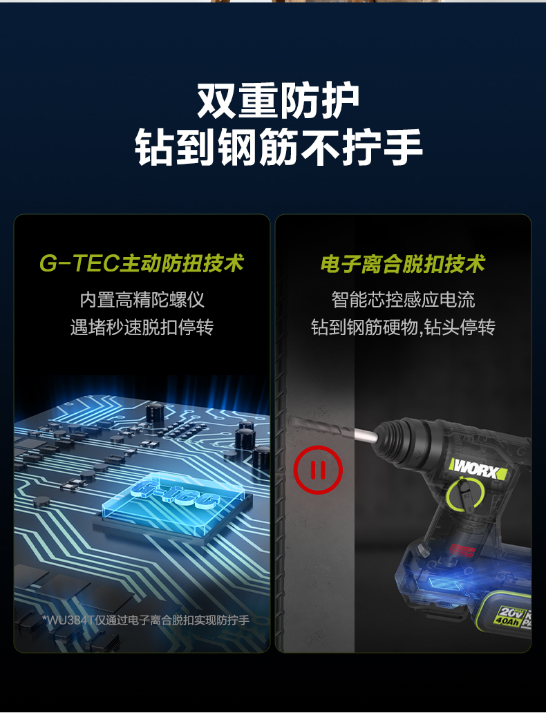 威克士锂电集尘电锤WU384充电冲击钻两用打混凝土钻墙电动工具