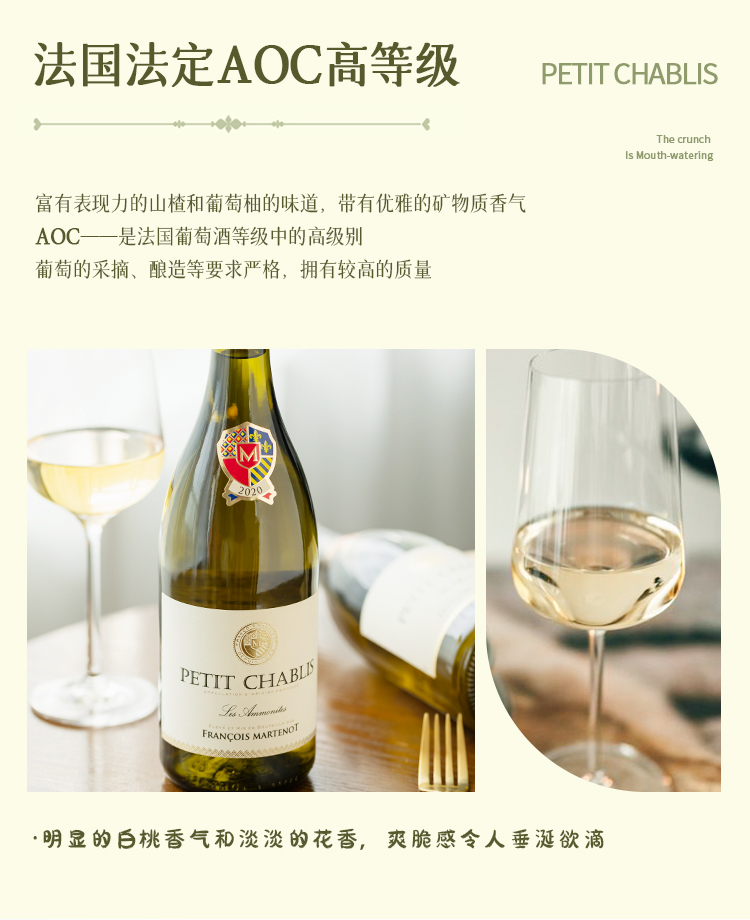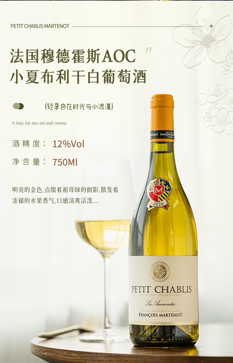 【法国进口】 法国穆德霍斯小夏布利干白葡萄酒 勃艮第AOC单一霞多丽干白葡萄酒 12%VOl