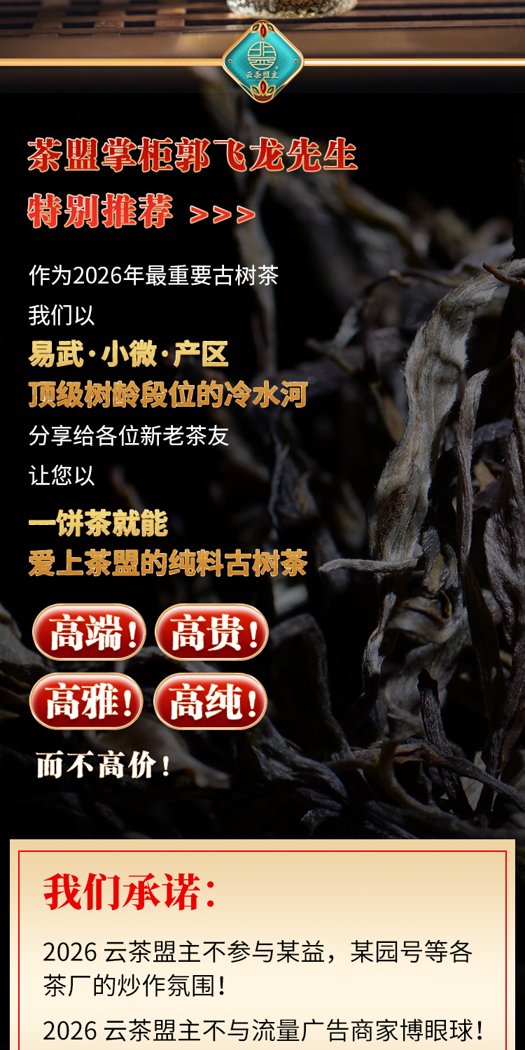 【春茶预售】2026年云茶盟主独家供应!冷水河超微产区连株800年大古树!纯料不掺杂!
