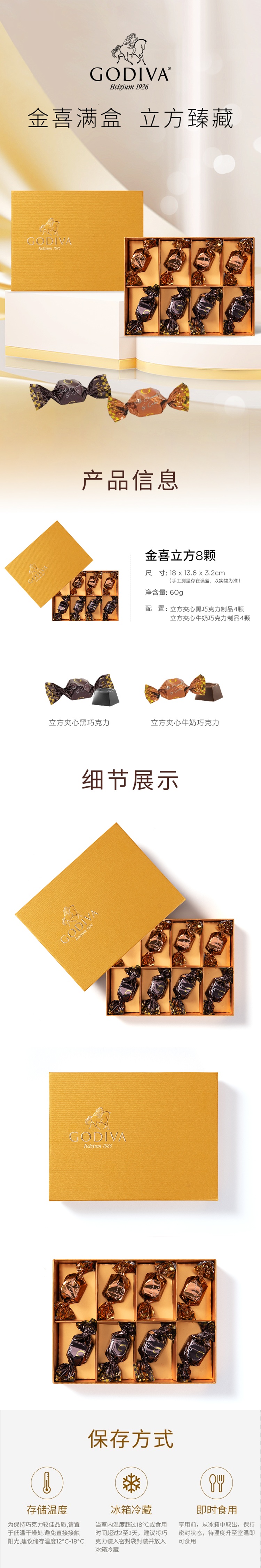 歌帝梵 金喜立方巧克力礼盒8颗装