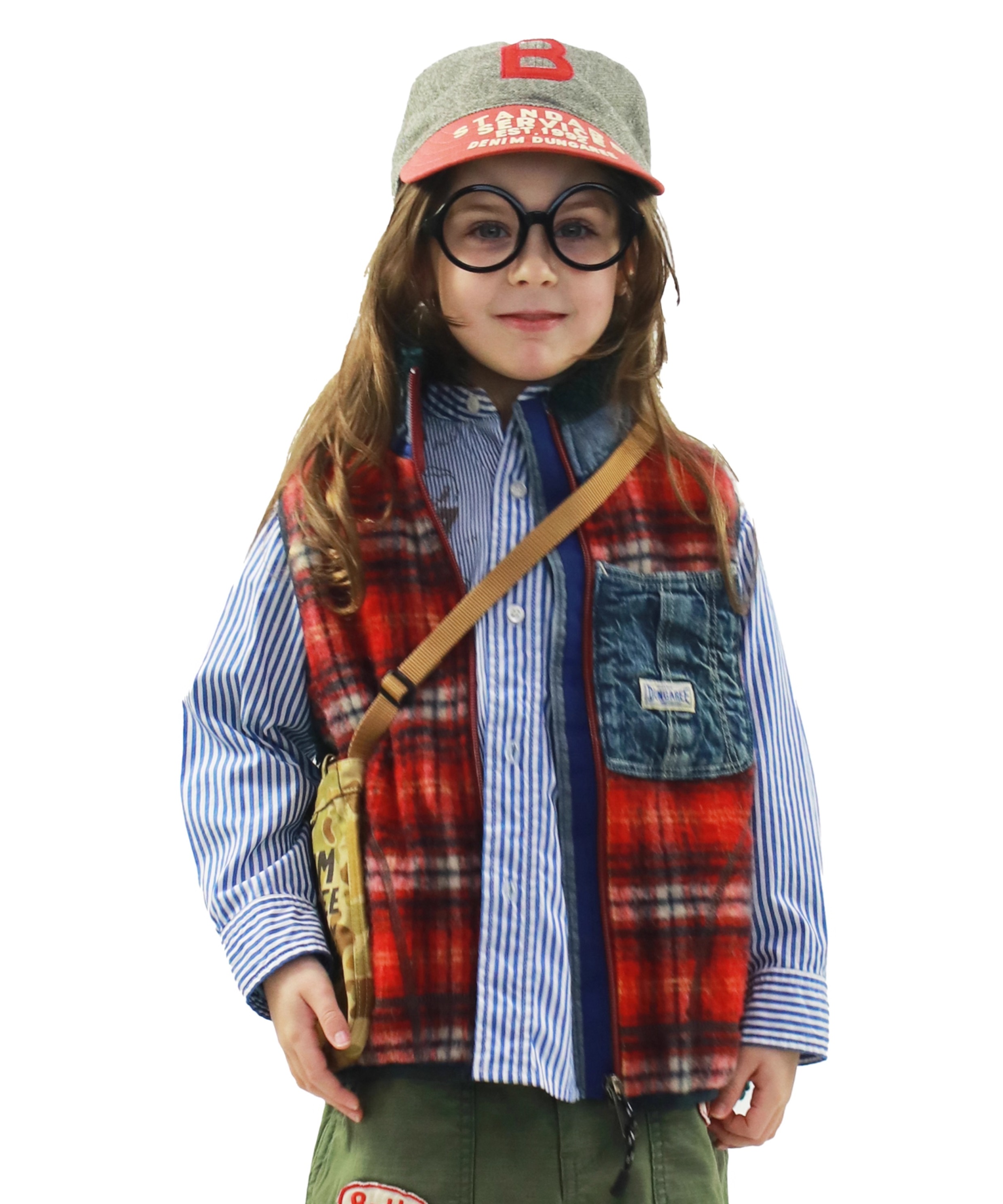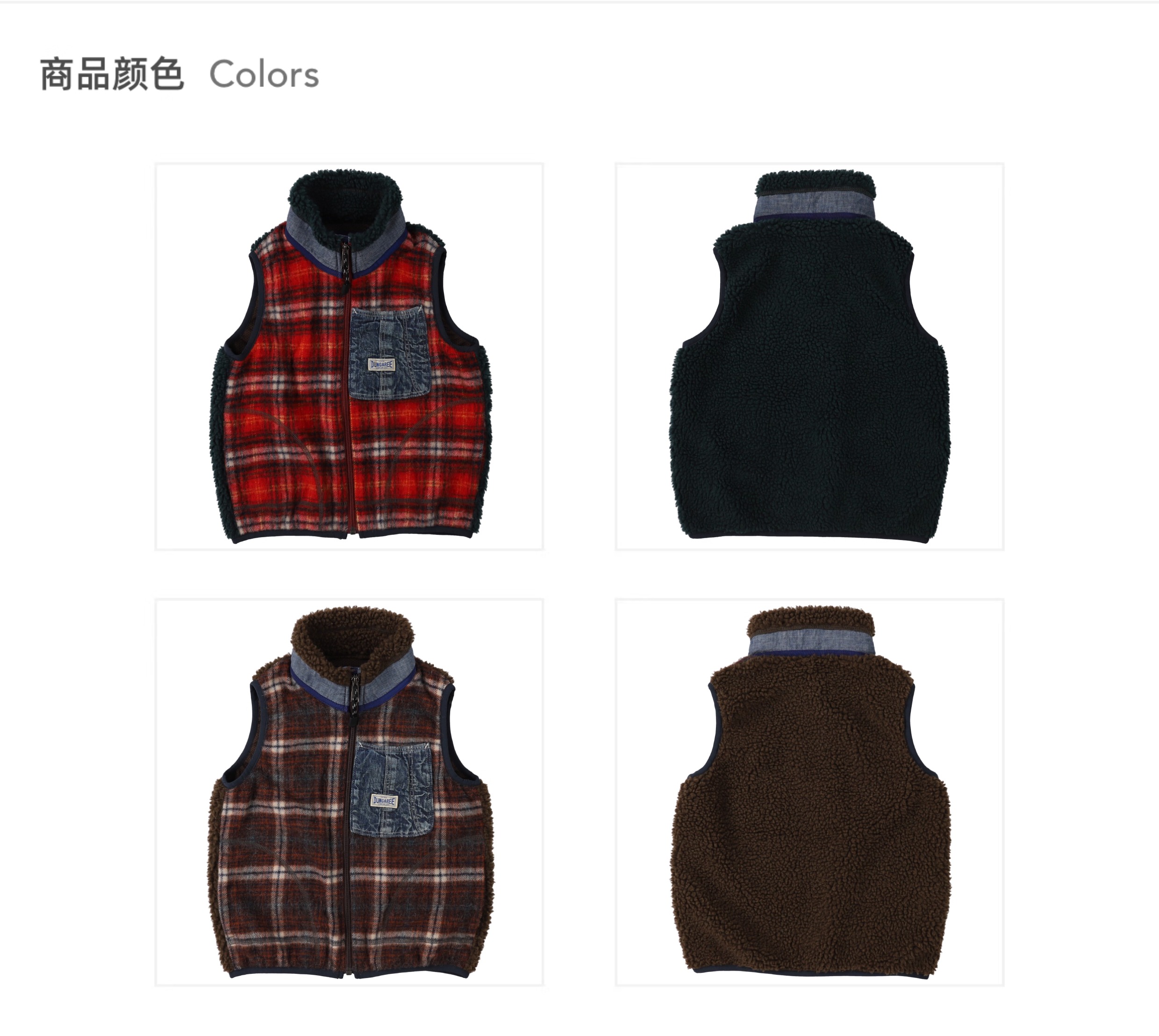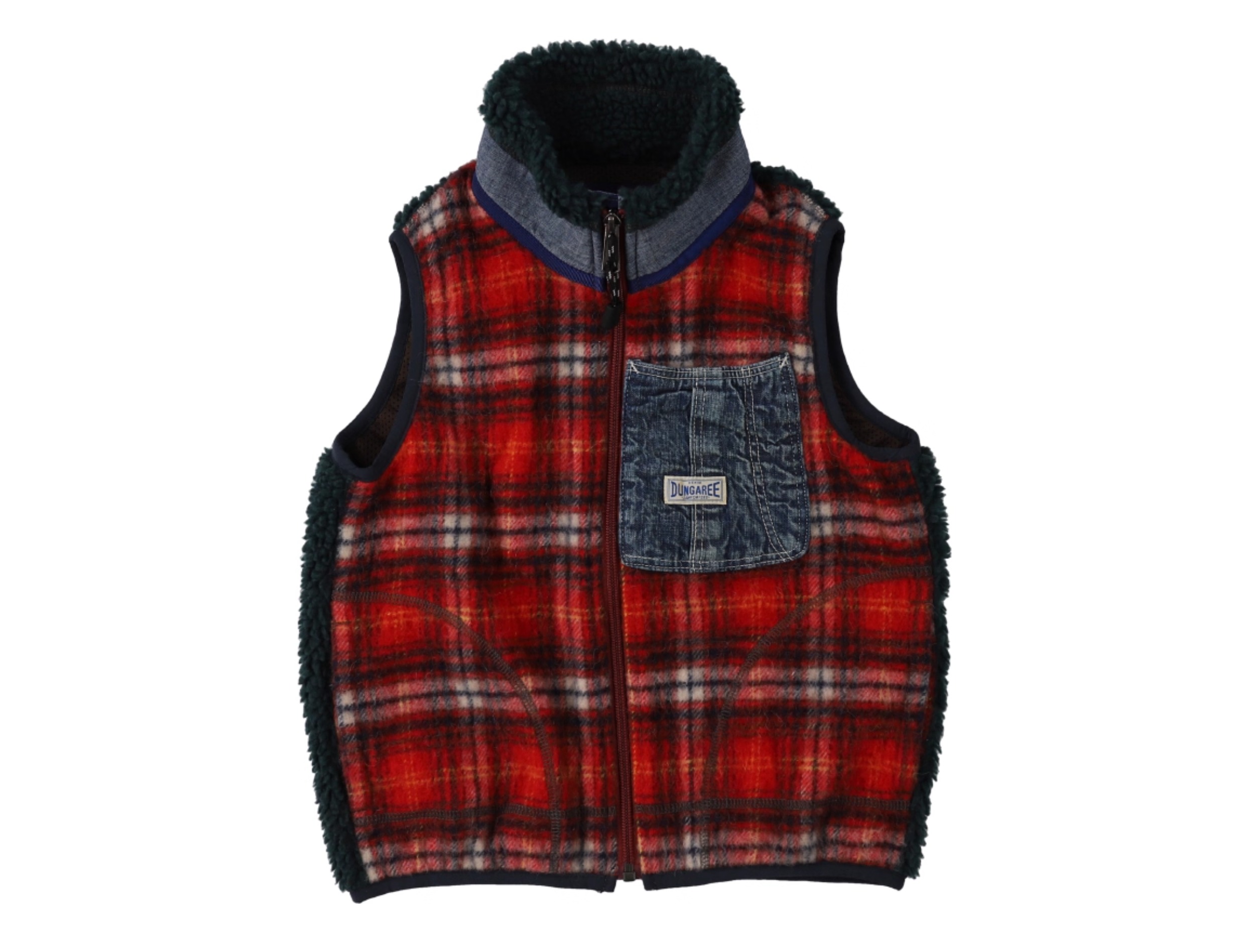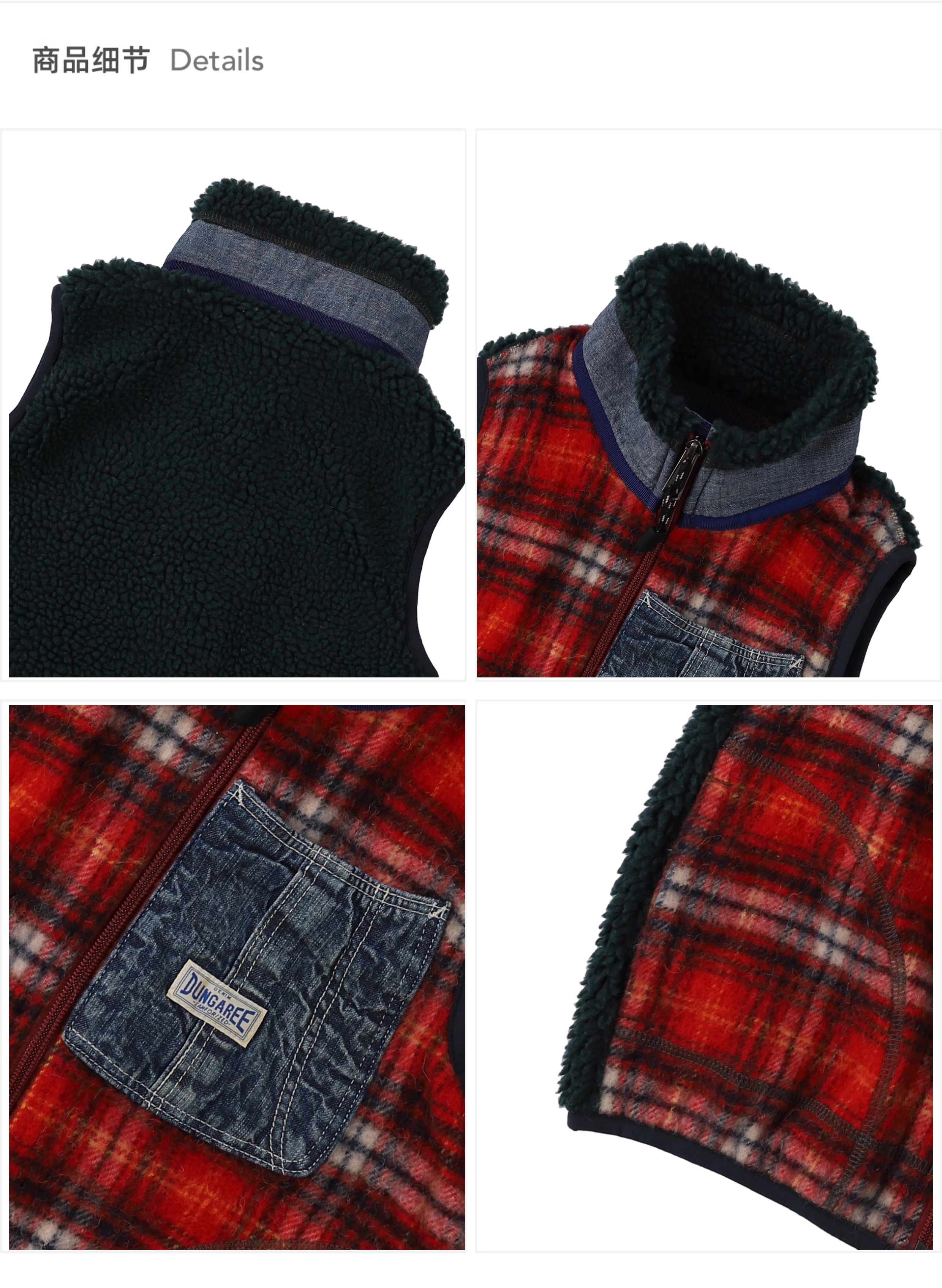 日本DD童装 DENIM DUNGAREE 复古绒格纹马甲
