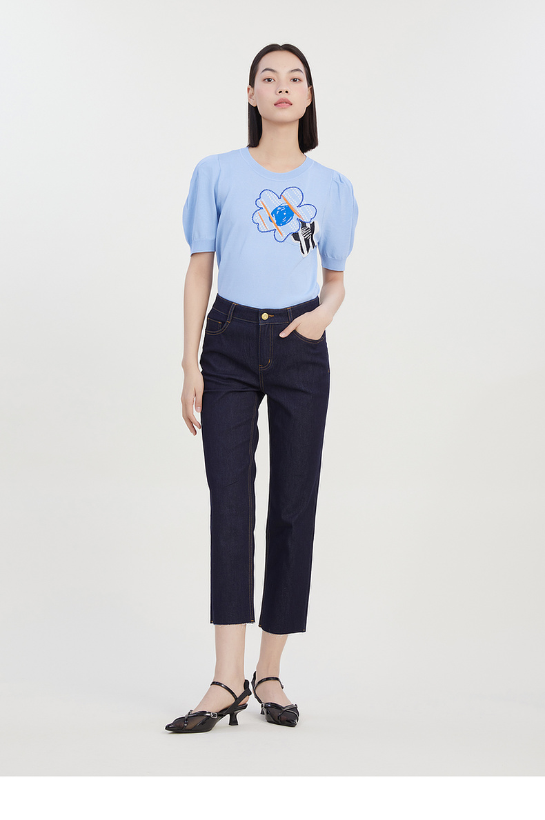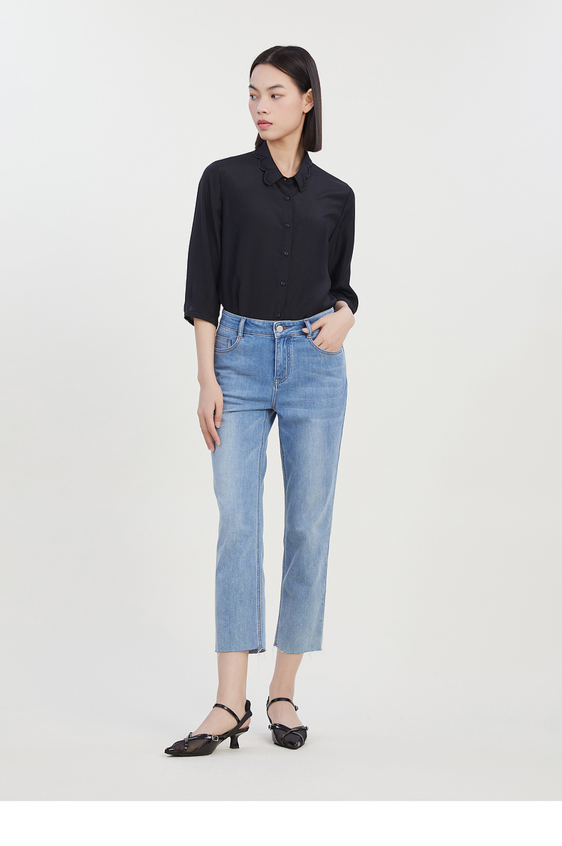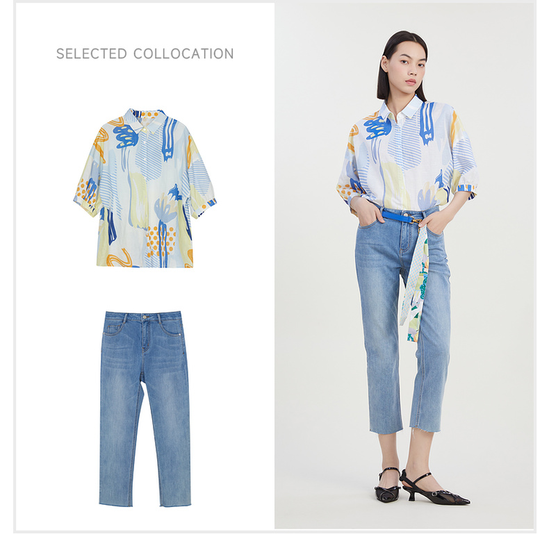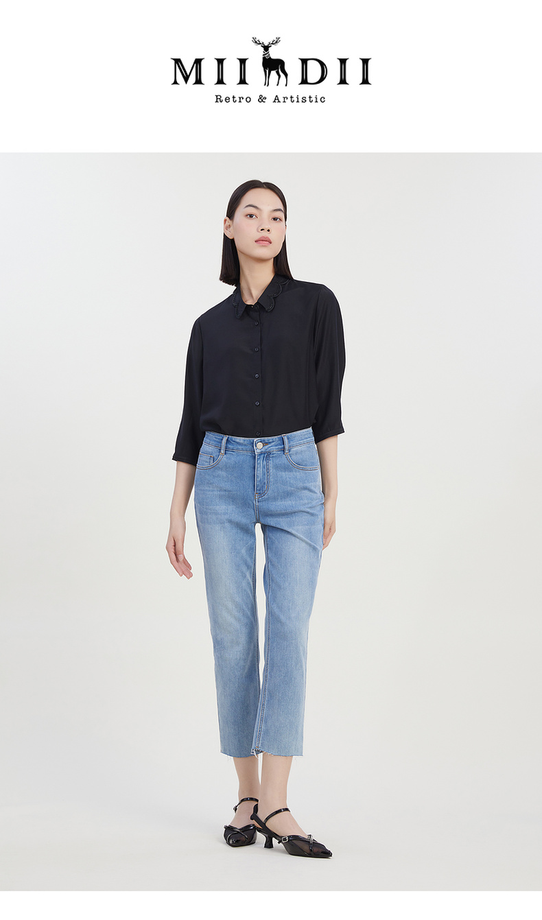 谜底百搭休闲直筒牛仔裤女2023夏季新款复古舒适九分裤232MK0553