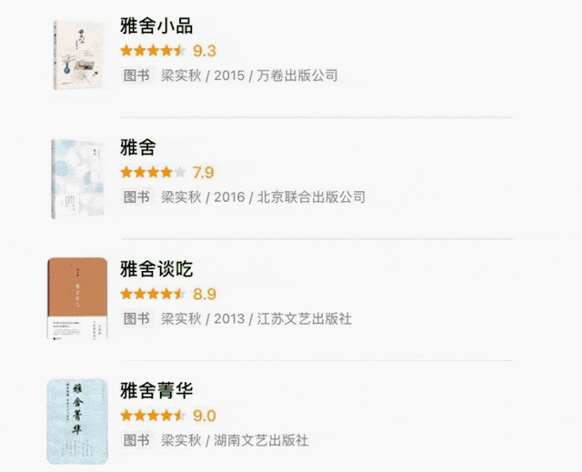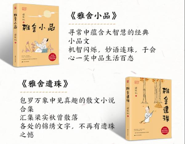 《雅舍随笔》则收录了梁实秋多年的读书札记、书信、诗歌等,文字直抒胸臆、不事雕琢,真实自然。