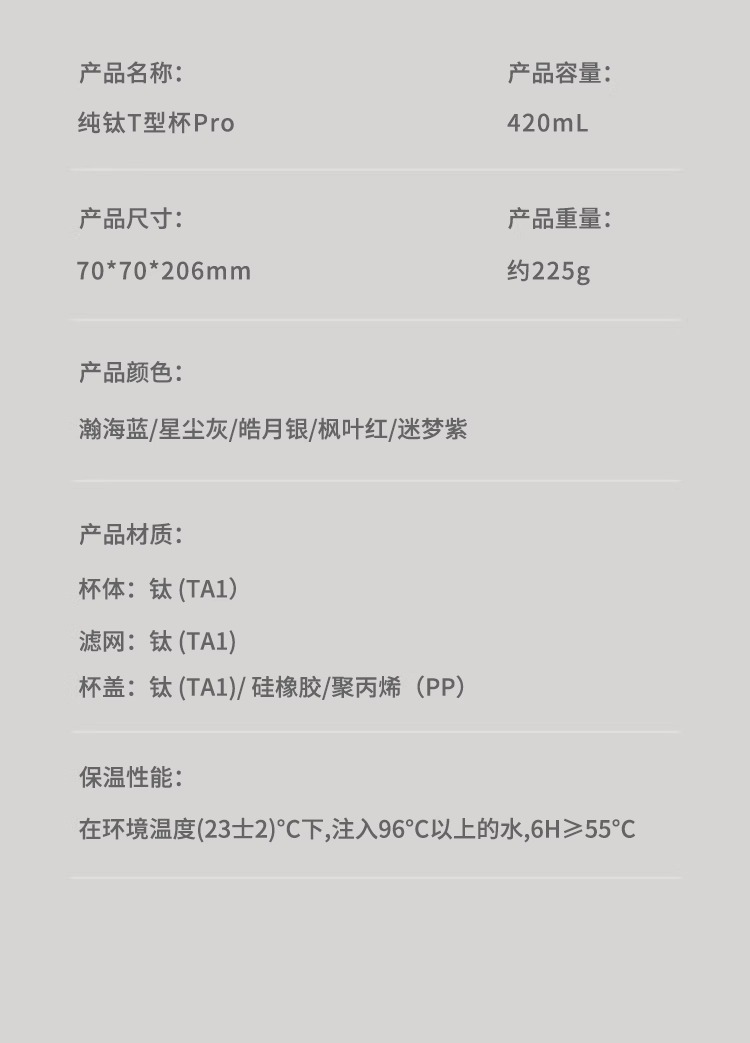 TAIC太可纯钛T型杯保温杯Pro 420ml(皓月银)